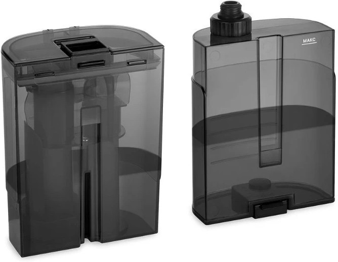 Чтобы снять резервуары, необходимо зажать фиксаторы и потянуть вверх. Крышка резервуара для чистой воды откручивается, чтобы в него можно было легко залить воду. Внутри резервуара для грязной воды предусмотрен поплавок для отслеживания уровня воды.