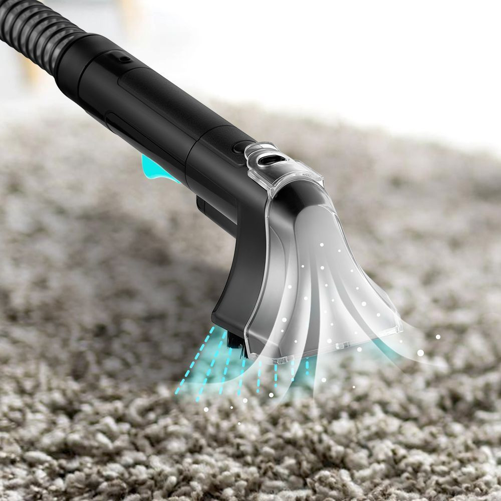 Пылесос автоматически подаёт чистую воду на поверхность, а затем всасывает её с загрязнениями. Распылите небольшое количество воды, а затем прижмите всасывающее отверстие к мокрой поверхности и плавно перемещайте насадку.