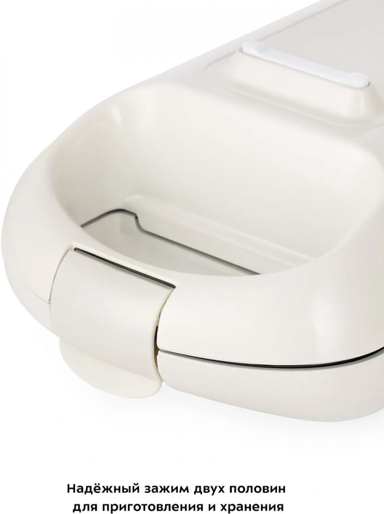 Зажим вафельницы не только обеспечивает идеальное приготовление вафель, но и служит для удобного хранения вафельницы. Также вафельница оснащена противоскользящими ножками, которые предотвращают её скольжение по столу во время приготовления.