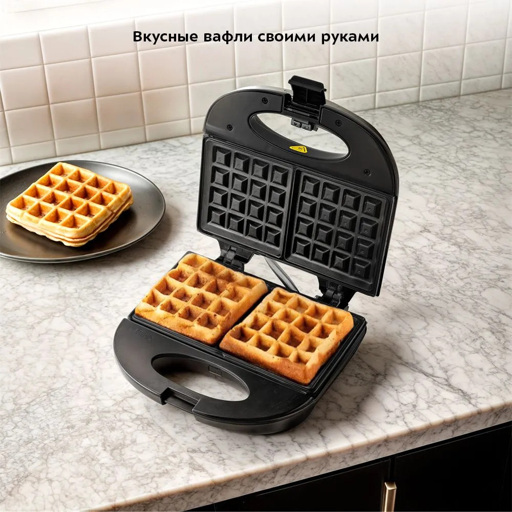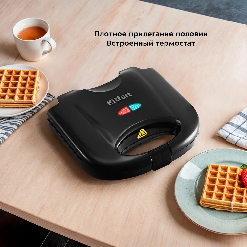 С помощью компактной вафельницы Kitfort КТ-3658 можно приготовить пышные бельгийские вафли на всю семью! В среднем выпекание 2 вафель до золотистой корочки займёт 3-5 минут. Прибор компактный и не займёт много места на кухне.