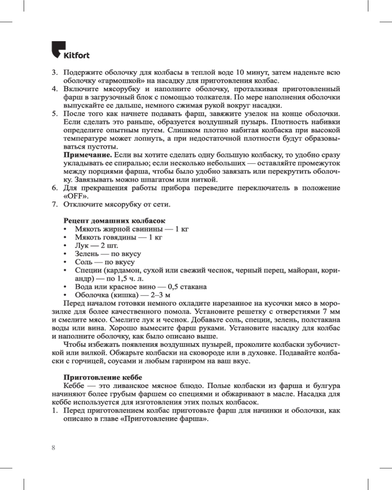 Насадка для колбас сделает их идеальными по форме, подходящими как для повседневного ужина, так и для праздничного стола. Насадка для кеббе поможет легко приготовить это ароматное и популярное блюдо ближневосточной кухни.