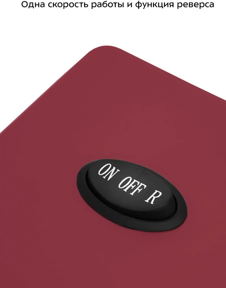 Мясорубка имеет одну скорость работы и функцию реверса. Переключатель включает и выключает работу мясорубки, а также работает в обратном направлении при переключении в положение «Реверс». Это поможет вытолкнуть застрявшие продукты из шнека.