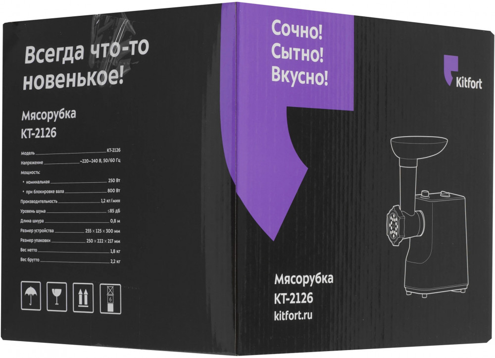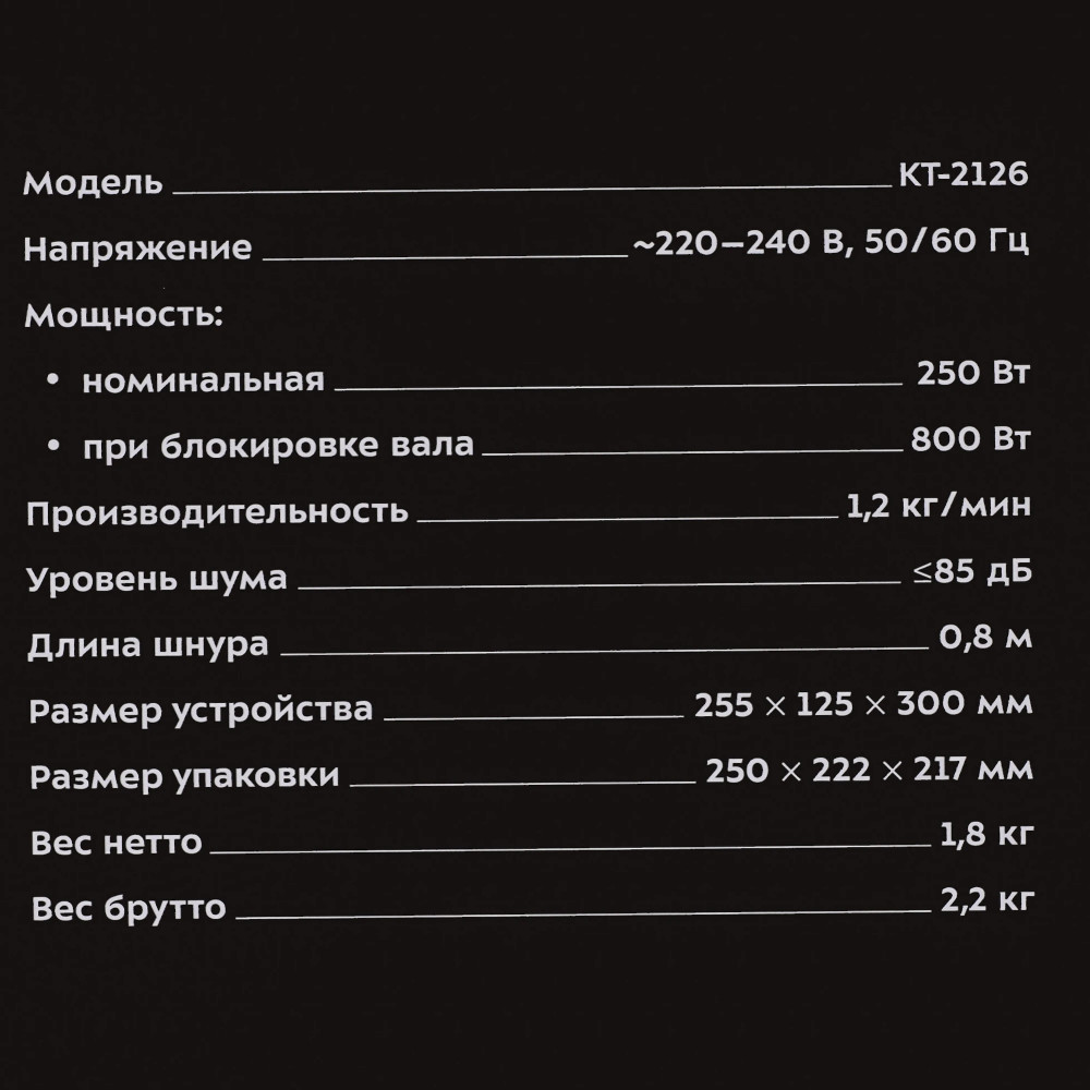 💳 Оплатить за товар можно при получении 🇰🇿 Есть бесплатная доставка по Казахстану от 1 дня 🎁 Копите бонусы с каждой покупки Мясорубка Kitfort КТ-2126 оснащена мощным мотором 800 Вт, что обеспечивает производительность 1,2 кг фарша в минуту! Корпус устройства выполнен из пластика. |