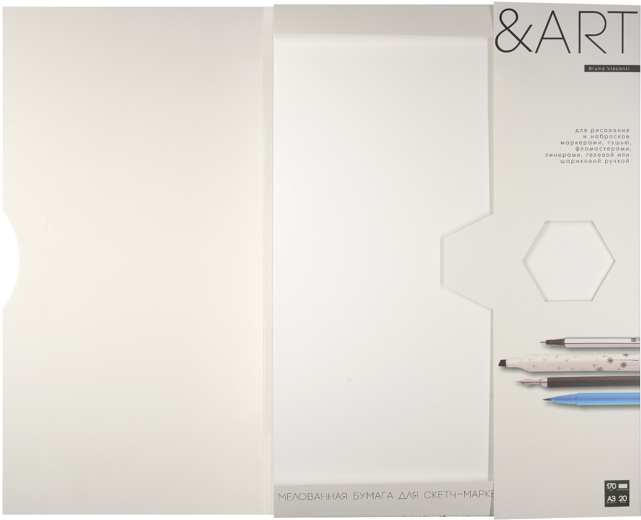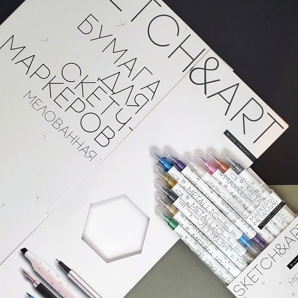 Bruno Visconti Набор бумаги для скетч-маркеров «SketchandArt»В данный момент этот товар отсутствует в продаже. Возможно, у нас найдется аналогичный или похожий товар здесь. Часто те, кто только начинает учиться рисовать скетчи спиртовыми маркерами, используют обычные альбомы для рисования и очень расстраиваются, когда чернила проступают на обратную сторону листа, оставляют следы на последующих страницах. Для таких целей бумага должна быть плотной, как в наборах SketchandArt с плотностью 170 г/м2 и с двусторонним мелованным покрытием. Двукратное мелованное покрытие с одной стороны листа увеличивает яркость и контрастность цвета и уменьшает расход чернил. Благодаря гладкой поверхности время высыхания маркеров увеличивается, что дает большой простор для создания градиентов и сложных переходов. Маркер легко скользит по поверхности листа, рисовать — одно удовольствие! Новый формат папки — это уникальное предложение как для профессионалов, так и для любителей рисования. Закрывающийся клапан не даст листам рассыпаться, а вырубное окошко-шестигранник позволит определить текстуру и качество бумаги, не открывая папку. Бархатистое покрытие Soft Touch создает защитный слой от воды. |