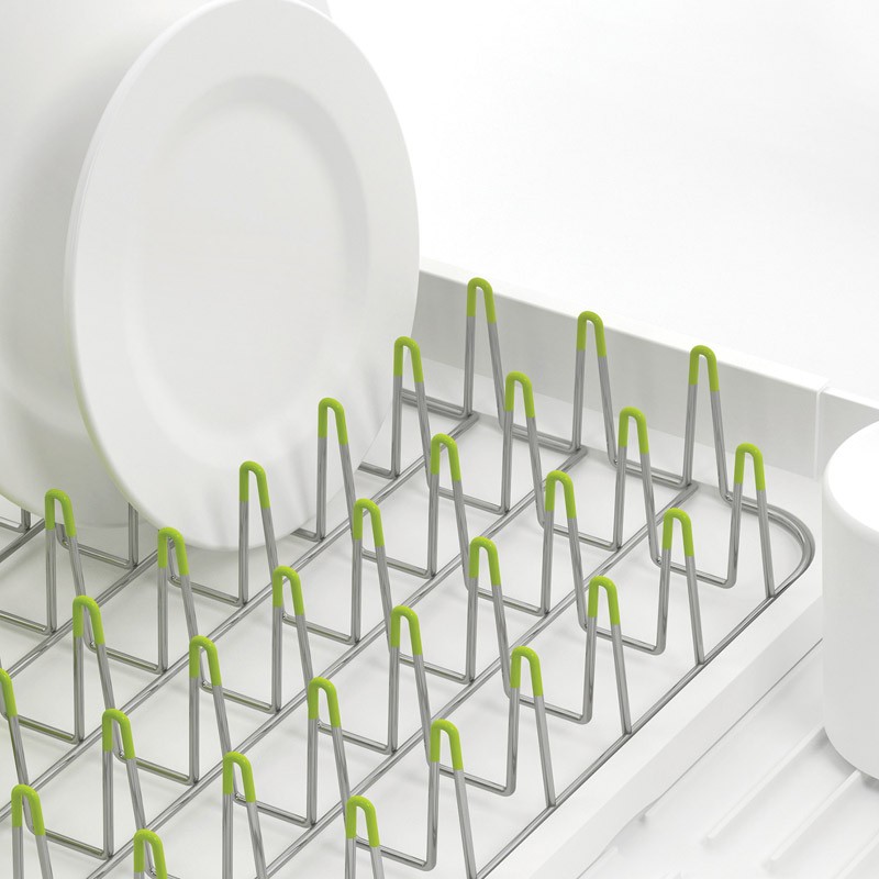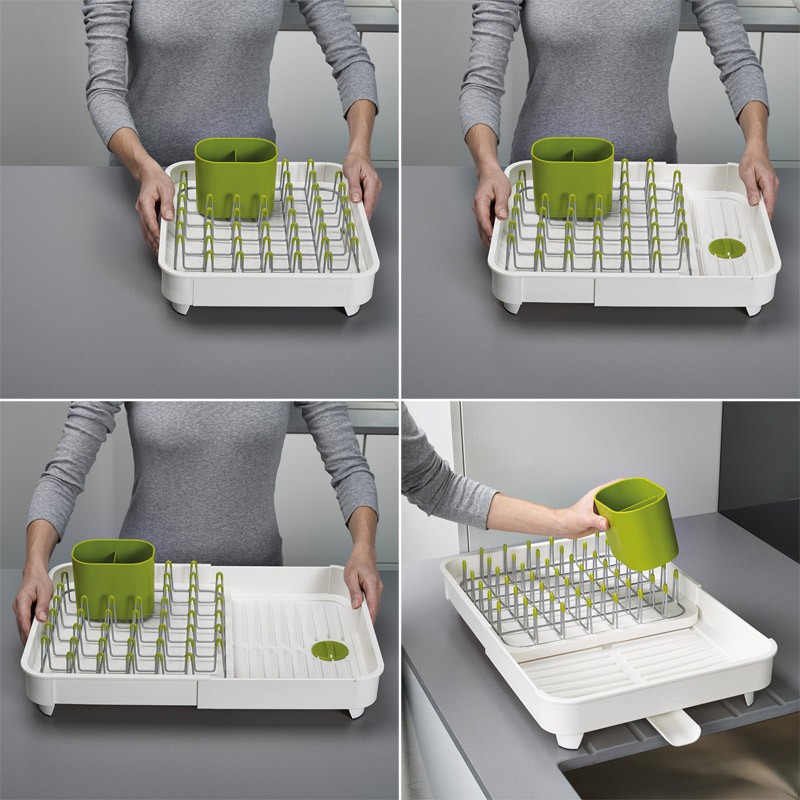 Joseph Joseph Сушилка для посуды раздвижнаяВ данный момент этот товар отсутствует в продаже. Возможно, у нас найдется аналогичный или похожий товар здесь. Серия: Extend Все кухни в домах разные, но проблема одна: не хватает места для самого необходимого. С умными решениями от Joseph Joseph можно запросто экономить пространство. Раздвижная сушилка для посуды разбирается ровно в два раза, в зависимости от количества тарелок и чашек, которые вам необходимо просушить прямо сейчас. С помощью специального поворотного «носика» вы можете регулировать слив лишней воды прямо в раковину. Этому так же способствуют «ребра» на дне сушилки и уклон поверхности. |