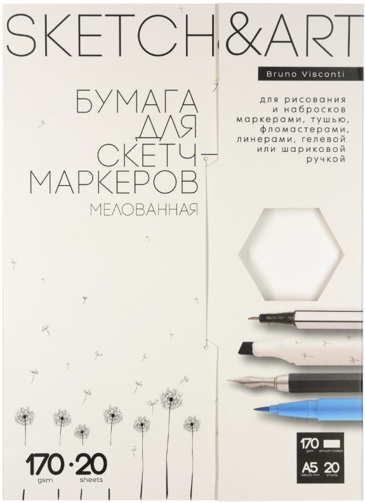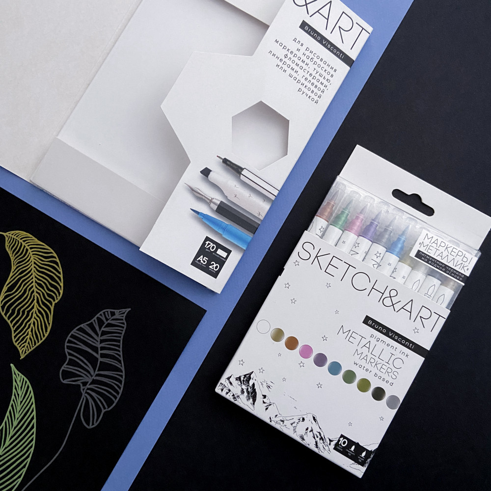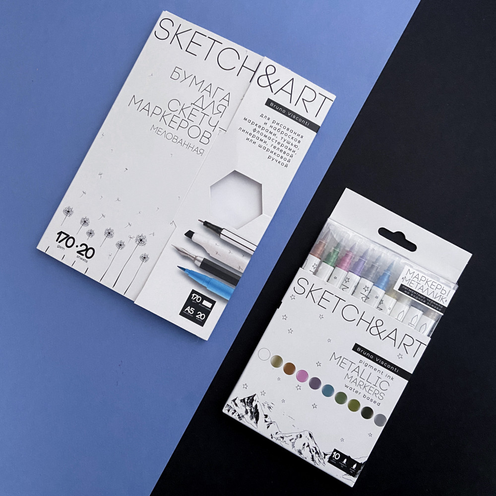 Bruno Visconti Набор бумаги для скетч-маркеров «SketchandArt»В данный момент этот товар отсутствует в продаже. Возможно, у нас найдется аналогичный или похожий товар здесь. Часто те, кто только начинает учиться рисовать скетчи спиртовыми маркерами, используют обычные альбомы для рисования и очень расстраиваются, когда чернила проступают на обратную сторону листа, оставляют следы на последующих страницах. Для таких целей бумага должна быть плотной, как в наборах SketchandArt с плотностью 170 г/м2 и с двусторонним мелованным покрытием. Двукратное мелованное покрытие с одной стороны листа увеличивает яркость и контрастность цвета и уменьшает расход чернил. Благодаря гладкой поверхности время высыхания маркеров увеличивается, что дает большой простор для создания градиентов и сложных переходов. Маркер легко скользит по поверхности листа, рисовать — одно удовольствие! Новый формат папки — это уникальное предложение как для профессионалов, так и для любителей рисования. Закрывающийся клапан не даст листам рассыпаться, а вырубное окошко-шестигранник позволит определить текстуру и качество бумаги, не открывая папку. Бархатистое покрытие Soft Touch создает защитный слой от воды. |