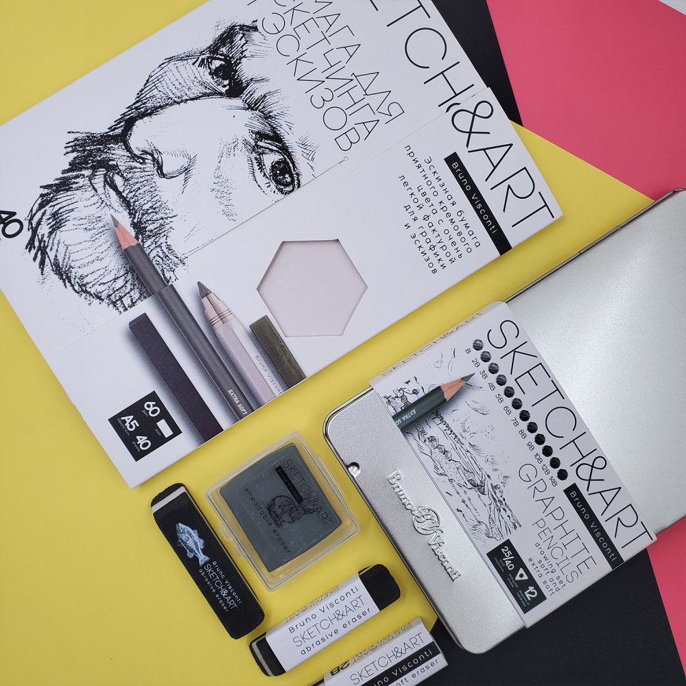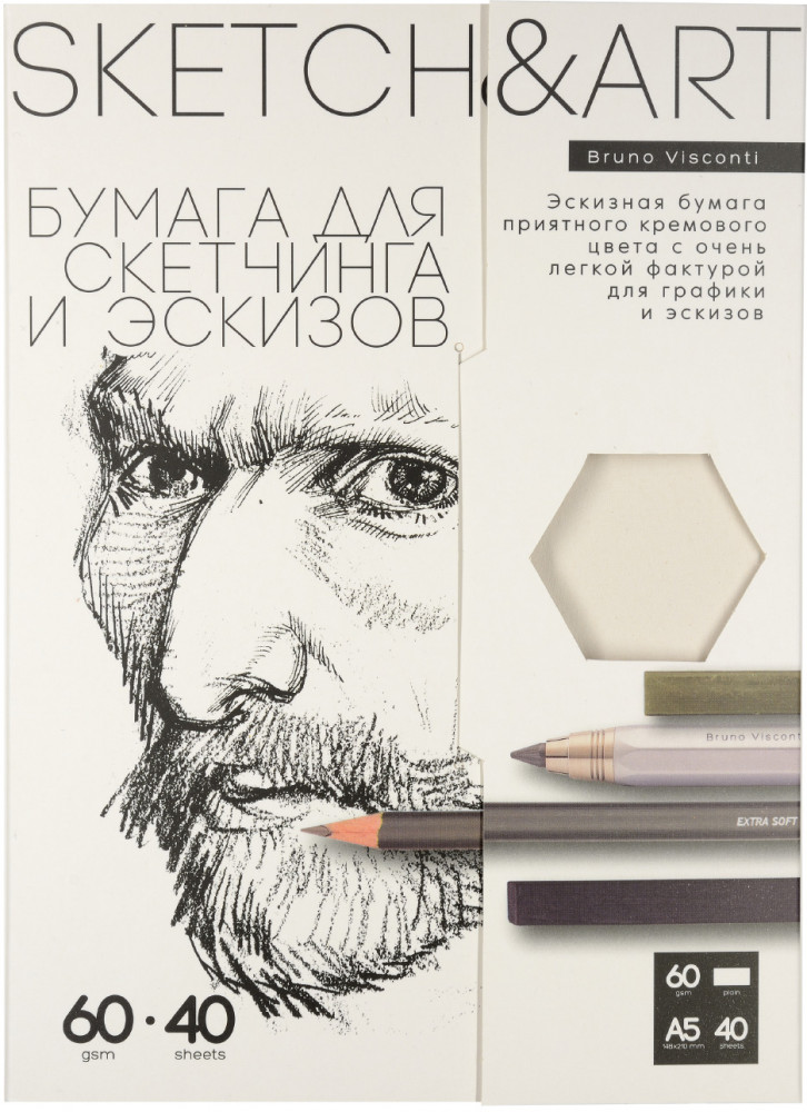 Bruno Visconti Набор бумаги для скетчинга и эскизов «SketchandArt»В данный момент этот товар отсутствует в продаже. Возможно, у нас найдется аналогичный или похожий товар здесь. Набор эскизной бумаги SketchandArt приятного кремового цвета с очень легкой фактурой для графики и эскизов. Набор из 40 листов, идеально подходит для набросков сепией, сангиной, углем, соусом, карандашом, шариковой ручкой, линерами, масляной пастелью. Листы упакованы в папку с закрывающимся клапаном и вырубным окошком-шестигранником, позволяющим определить текстуру и качество бумаги, не открывая папку. Папка имеет бархатистое покрытие Soft Touch, создающее защитный слой от воды. |