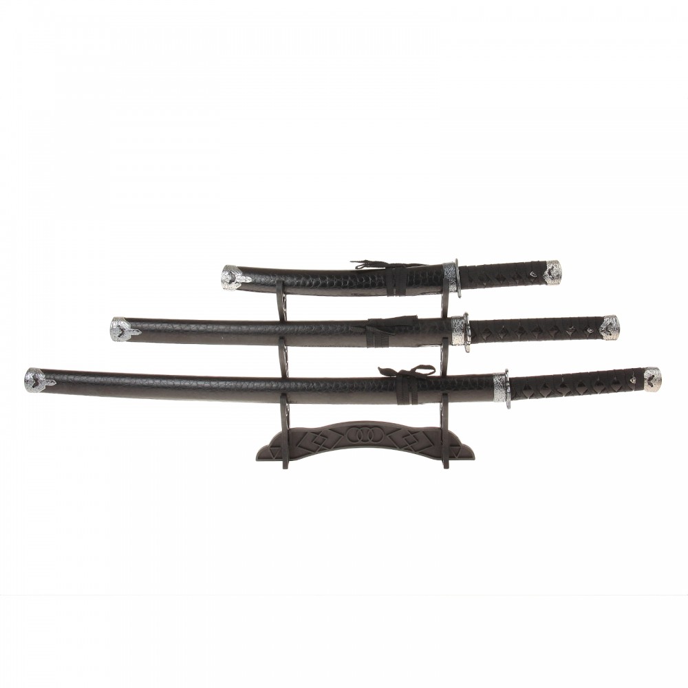 | Катаны сувенирные 3 в 1 на подставке, черные ножны, под змею+239 (бонусов)
