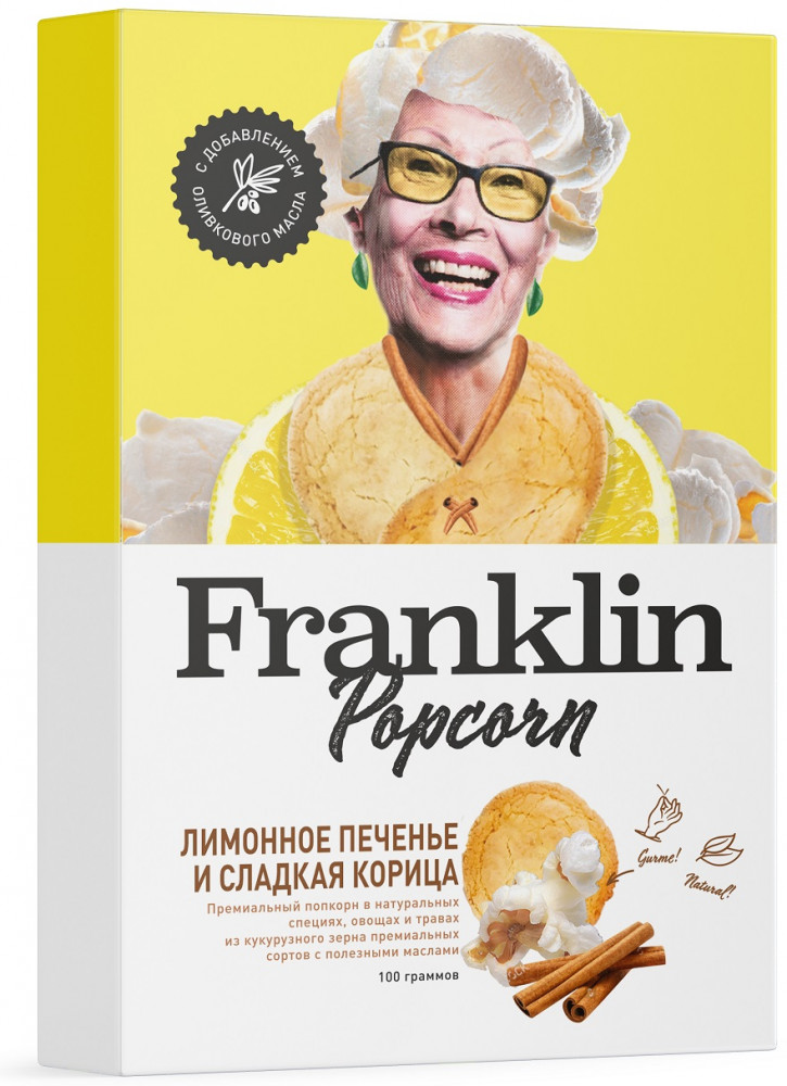 Franklin Popcorn — премиальный гурмэ-попкорн для микроволновки. Мы обожаем попкорн и, опираясь на более чем 100-летние традиции его приготовления, создали продукт, который раскрывает настоящий вкус этого лакомства — натуральный, ароматный и по-настоящему вкусный.