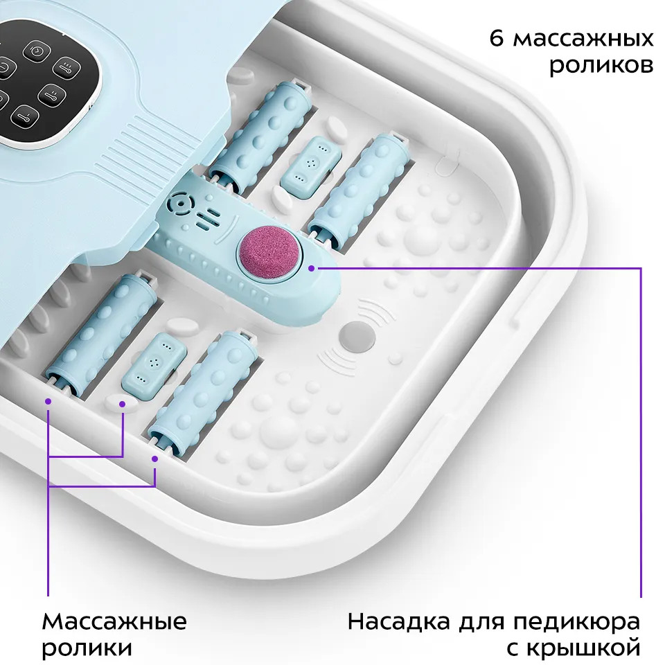 Гидромассажная ванна для ног оснащена таймером на 20 и 30 минут. По прошествии этого времени устройство автоматически выключится. Если таймер не будет включён, и вы не выключите устройство вручную, автоотключение произойдёт через 60 минут.