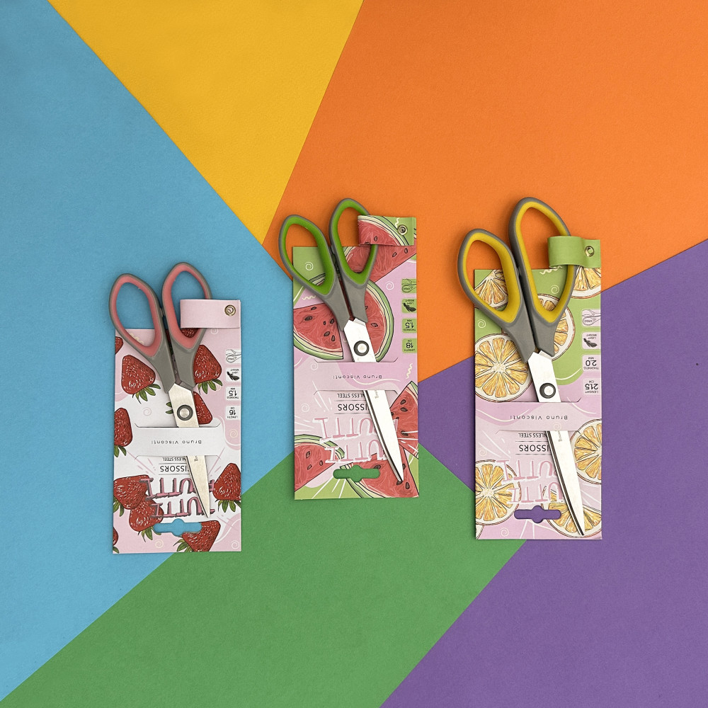 Bruno Visconti Ножницы классические «Tutti frutti»В данный момент этот товар отсутствует в продаже. Возможно, у нас найдется аналогичный или похожий товар здесь. Ножницы из нержавеющей стали Tutti frutti ТМ Bruno Visconti. Надежный элемент крепления лезвий обеспечивает плавность хода. Эргономичные пластиковые рукоятки со вставками из мягкой термопластичной резины предотвращают скольжение пальцев и обеспечивают удобство в использовании. Толщина лезвий — 1.5 мм. Длина — 215 мм. |