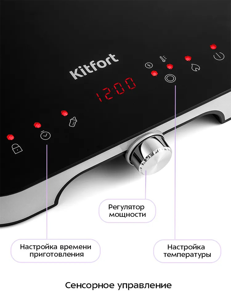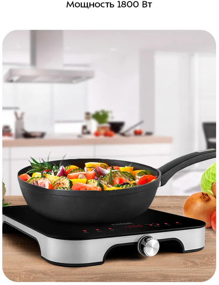 Индукционная плитка Kitfort KT-148 — ваш личный помощник на кухне! Плавная регулировка температуры, позволяет настроить нагрев под любые блюда и готовить их вкусно, быстро и абсолютно безопасно!