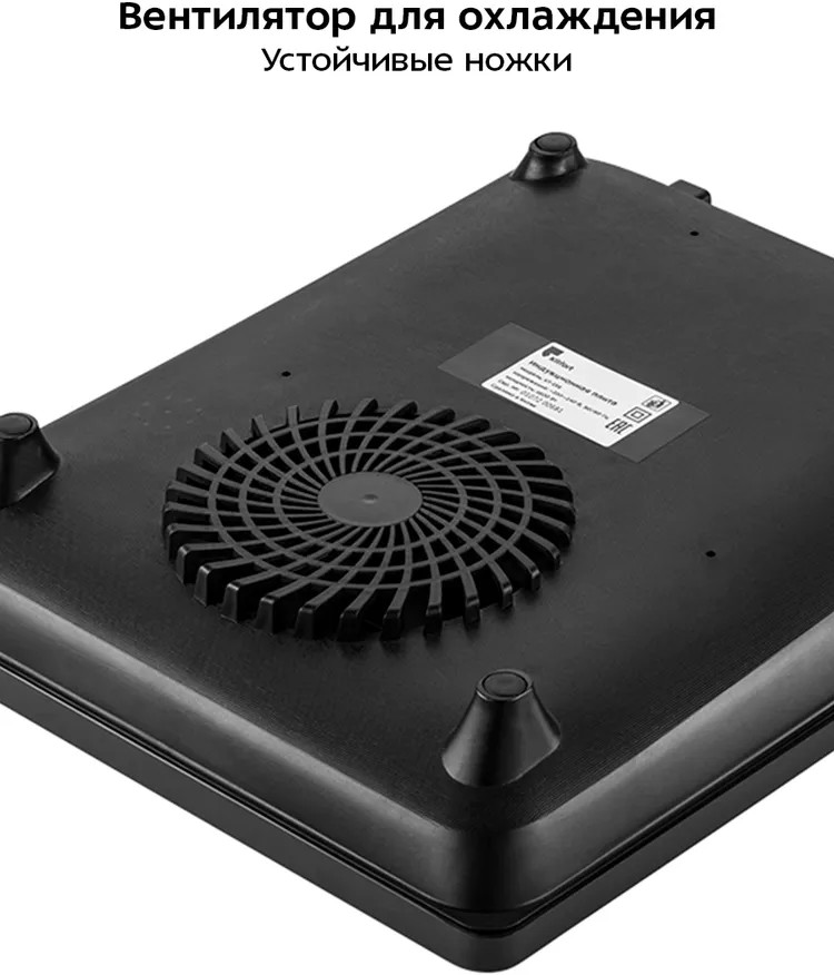 На обратной стороне КТ-158 встроен вентилятор, который способствует быстрому охлаждению плиты во время интенсивной работы и после её завершения. А для надёжного и устойчивого положения плиты на поверхности установлены противоскользящие ножки.