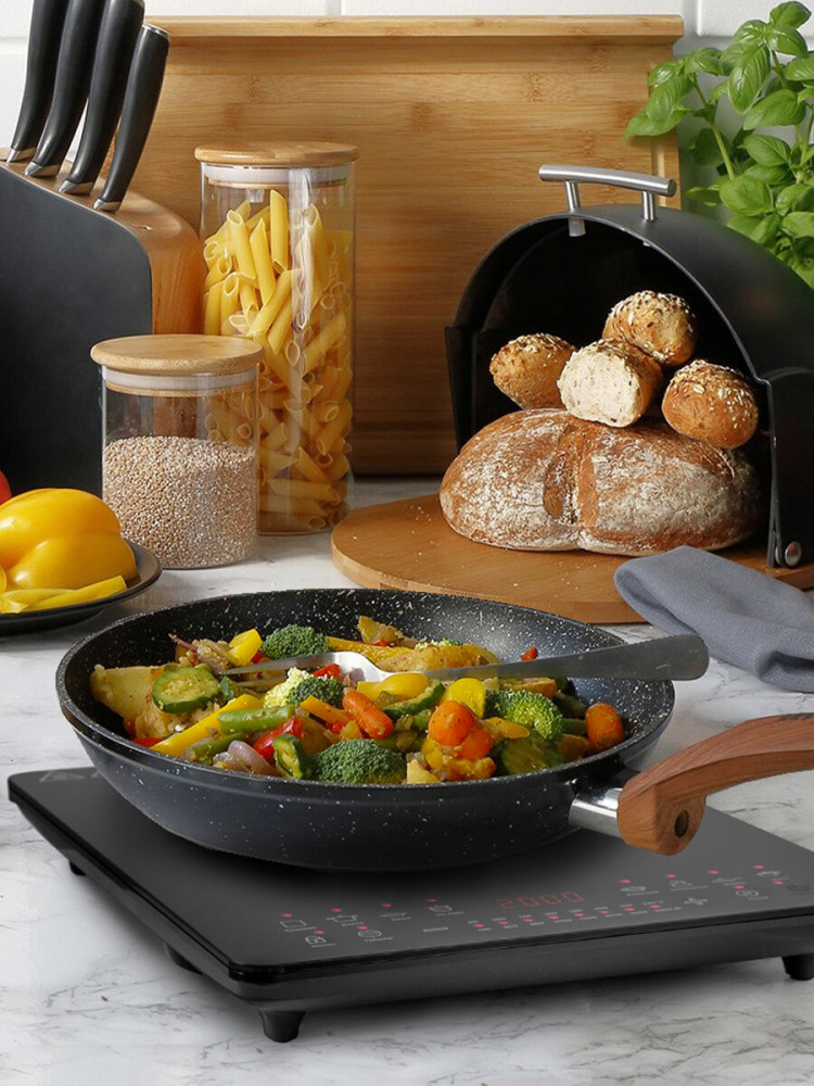 Индукционная плитка практически исключает вероятность получения ожогов, так как рабочая поверхность почти не нагревается во время готовки.
