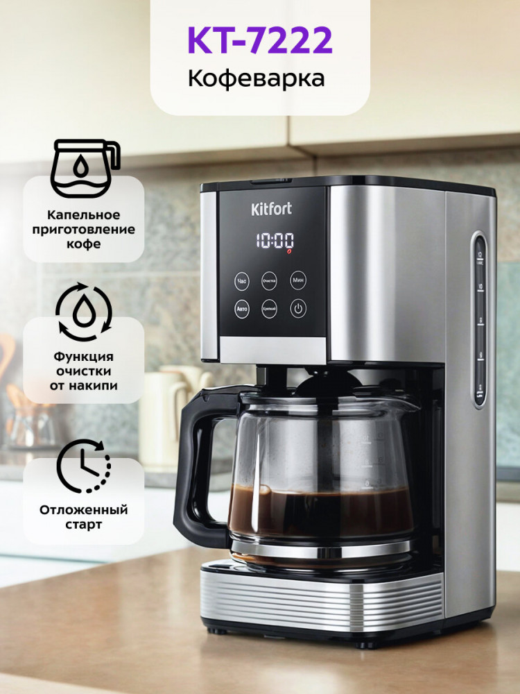 | Kitfort Кофеварка капельная КТ-7222+921 (бонус)