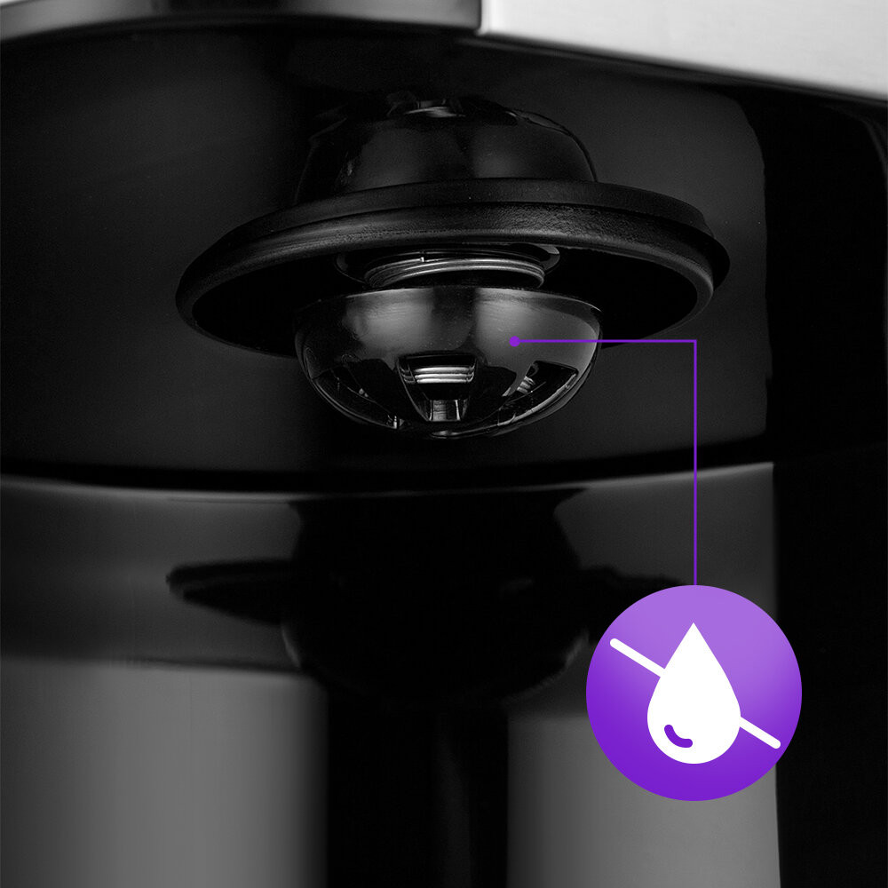 Кофеварка оборудована противокапельной системой — затвором, приостанавливающим подачу кофе при вынимании кофейника из кофеварки. Вы можете налить кофе в чашку, не дожидаясь окончания приготовления.