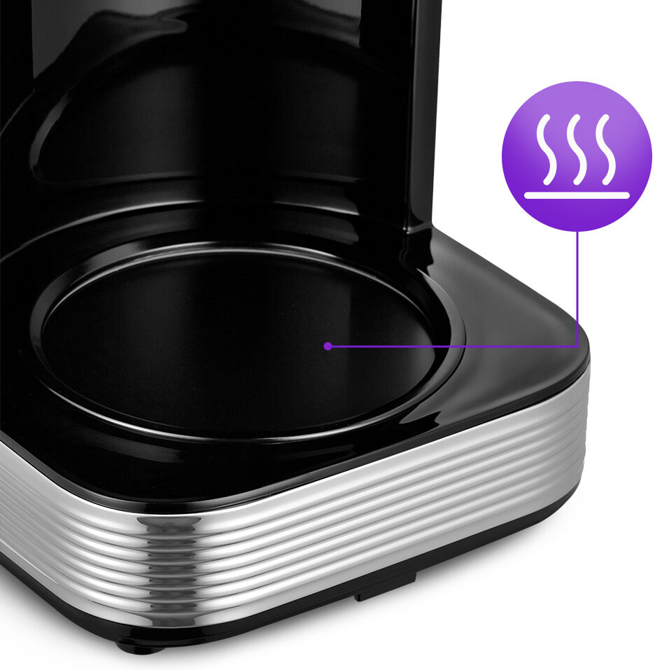 По окончании приготовления кофеварка перейдёт в режим подогрева. Платформа с подогревом, на которой стоит кофейник с готовым кофе, будет горячей в течение 30 минут, затем кофеварка выключится.
