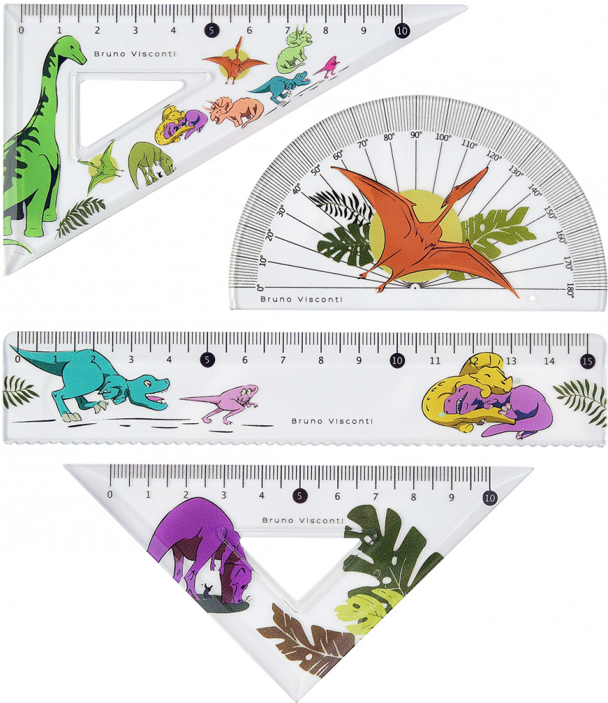 Bruno Visconti Набор «HappyGraphix. Динозавры»В данный момент этот товар отсутствует в продаже. Возможно, у нас найдется аналогичный или похожий товар здесь. Набор измерительных инструментов из коллекции «Happy Graphix. Динозавры» ТМ Bruno Visconti прекрасно подойдет для использования на уроках математики в средней школе. В наборе: два треугольника на 30 и на 45 градусов, стандартная линейка с длиной разметки 15 см и транспортир. Все предметы выполнены в одном стилевом решении. Набор изготовлен из нетоксичного прозрачного пластика. Шкалы с разметками нанесены тиснением и не сотрутся. По измерительной стороне линеек есть фаски, так что их удобно прикладывать и удерживать на бумаге: линии получаются точными и четкими. |