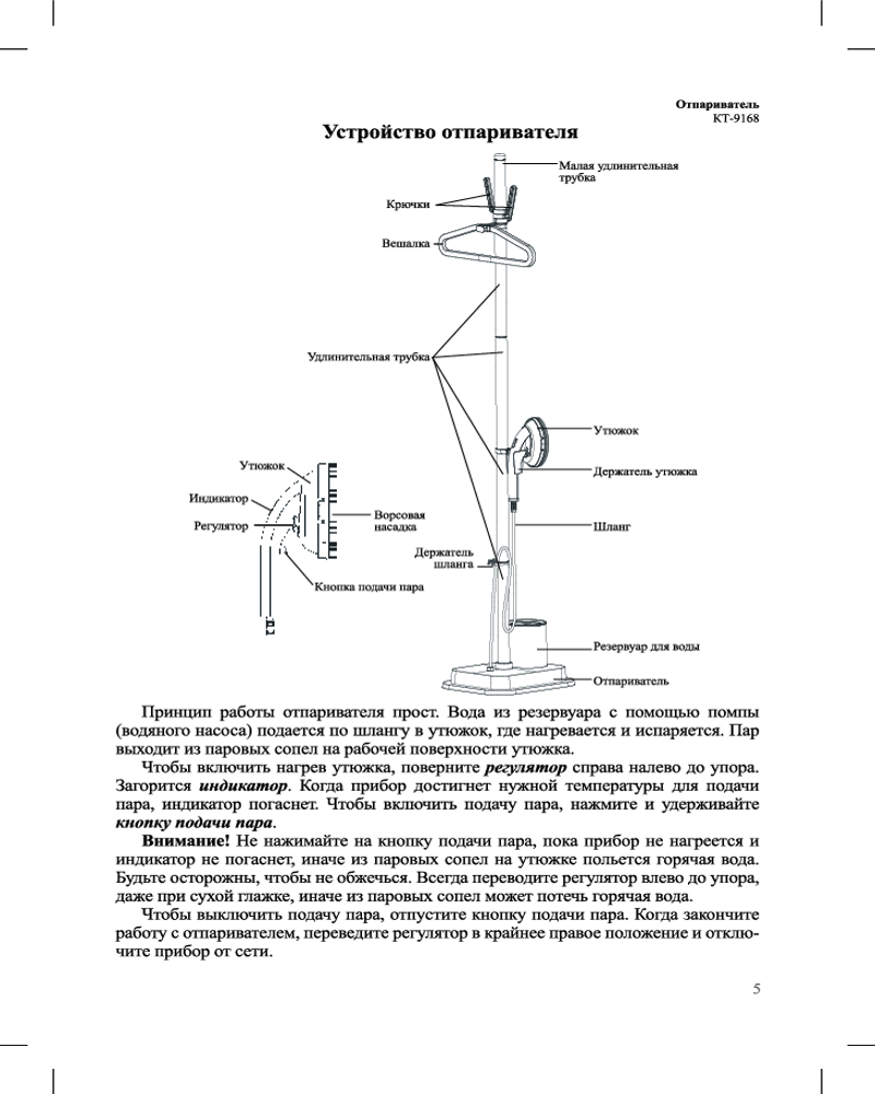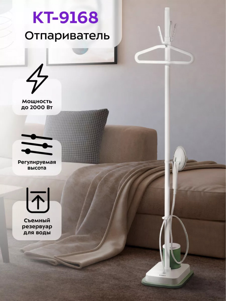В данный момент этот товар отсутствует в продаже. Возможно, у нас найдется аналогичный или похожий товар здесь. Отпариватель КТ-9168 позволяет быстро прогладить любые вещи и изделия из текстиля. В отличие от утюгов, которыми гладят ткани и одежду, расположенные горизонтально, отпаривателем обрабатывают одежду и ткани, расположенные вертикально.