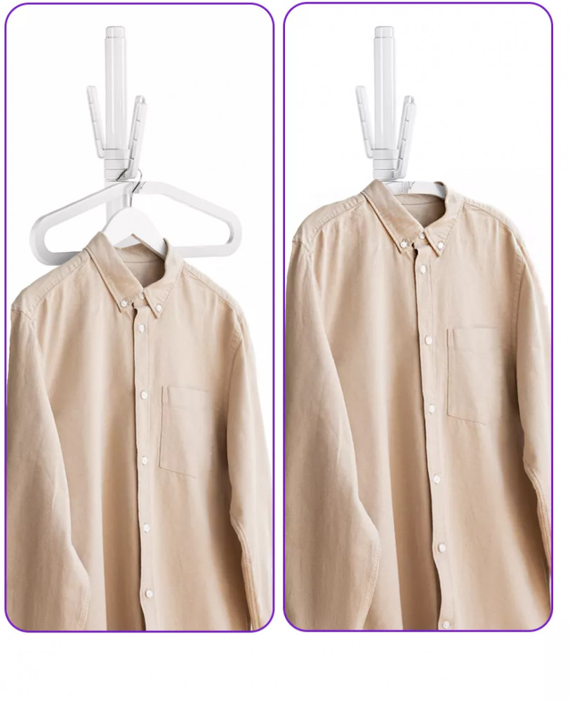 На вешалку отпаривателя можно повесить рубашки, брюки и другую одежду. Также одежду можно подвесить на крючок отпаривателя, чтобы не перевешивать её с вешалок, на которых она хранится в шкафу.