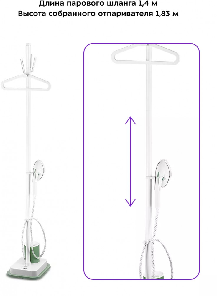 • высота отпаривателя с разложенной стойкой — 1,83 м;