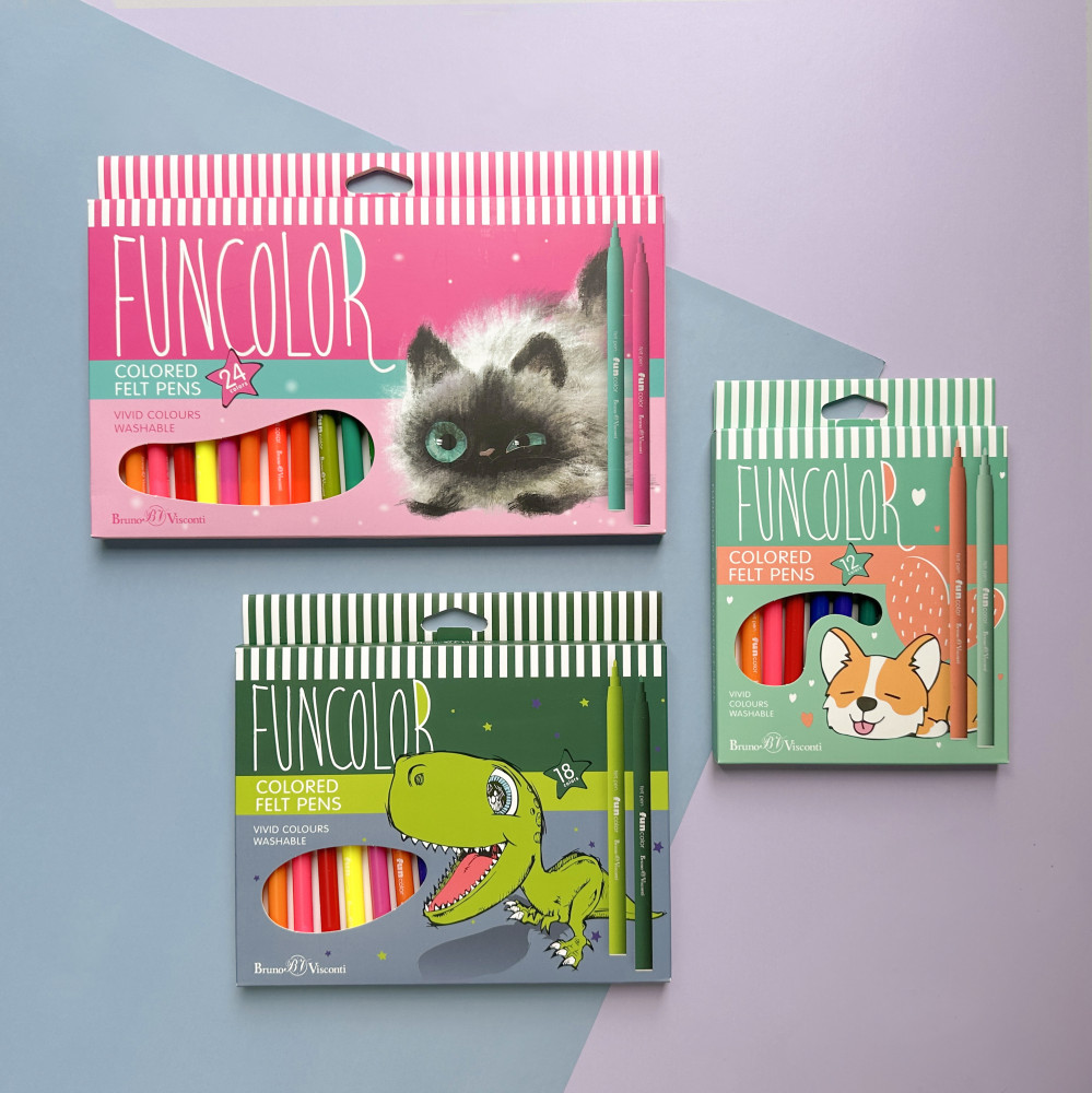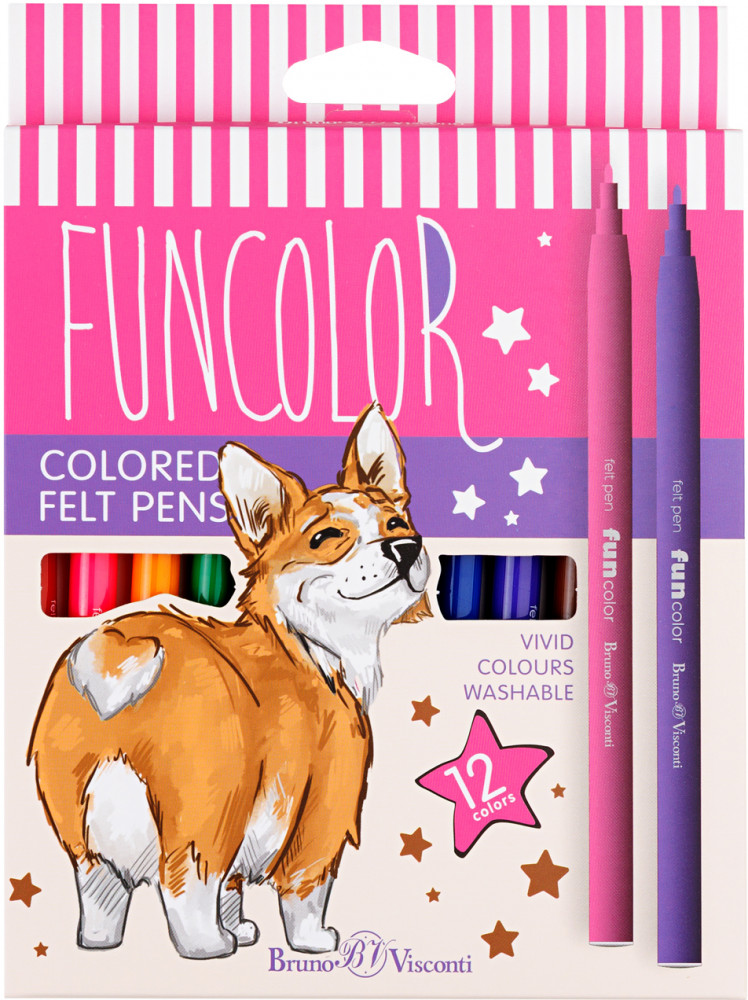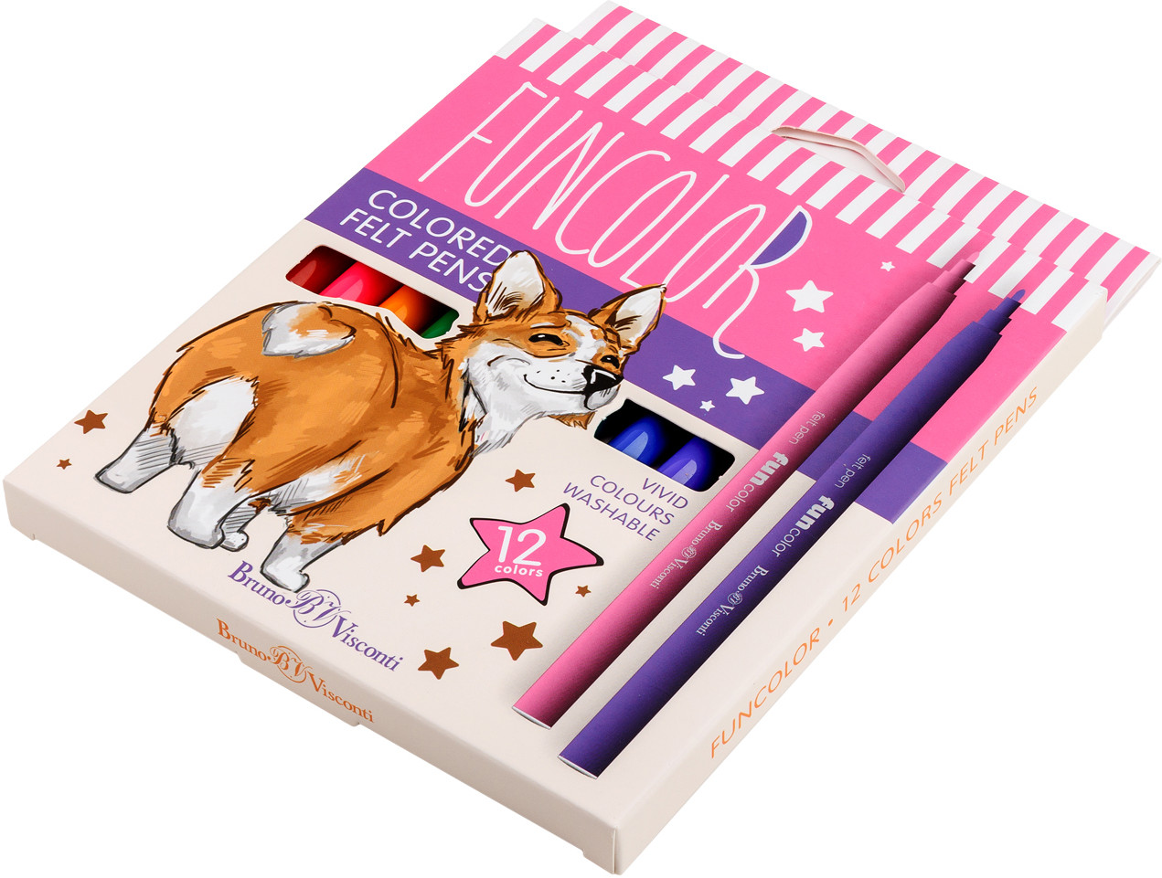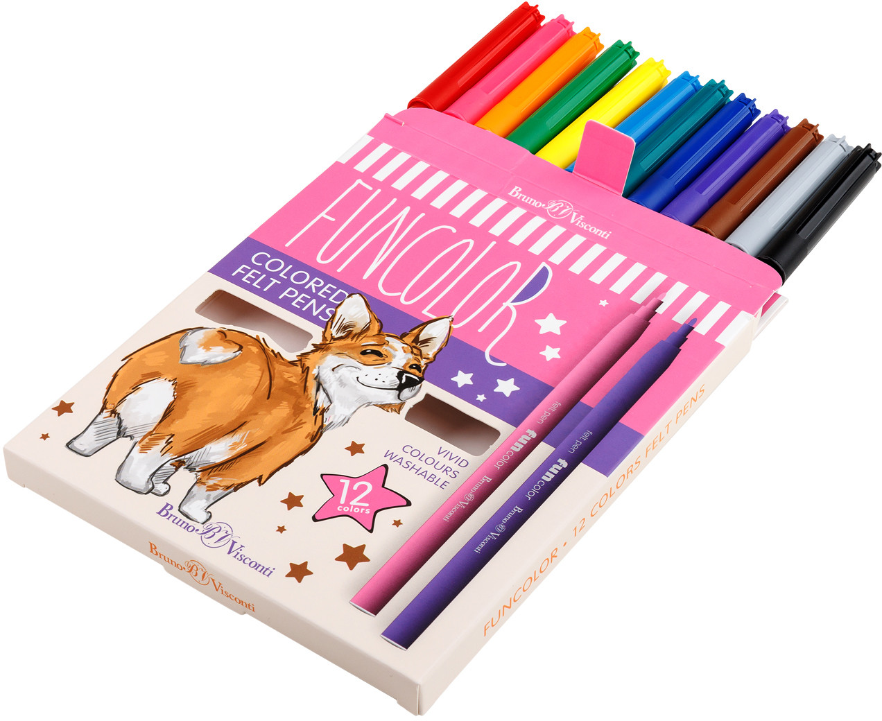Bruno Visconti Набор фломастеров «FunColor»В данный момент этот товар отсутствует в продаже. Возможно, у нас найдется аналогичный или похожий товар здесь. Набор из 12 фломастеров «FunColor» ТМ Bruno Visconti предназначен для детского творчества. Фломастеры порадуют как малышей, так и их родителей. Рисовать ими одно удовольствие, рисунки получаются яркими благодаря качественным цветным пигментам. Чернила на водной основе не токсичны и безопасны для детей. Пишущий узел не деформируется при нажатии и оставляет линию шириной 1 мм. Корпус фломастеров произведен из полипропилена и имеет повышенную устойчивость к деформации, при поломке не образует острых краев. Фломастеры снабжены вентилируемыми колпачками и упакованы в картонную коробку с ярким дизайном. Крышка коробки снабжена язычком для удобства ее открывания. Качественно, безопасно, красиво! |