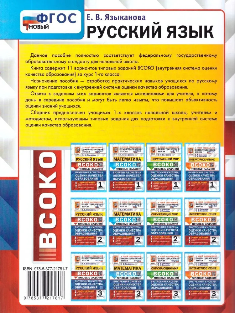 ВСОКО. Русский язык. 1 класс. 11 вариантов типовых заданий+22