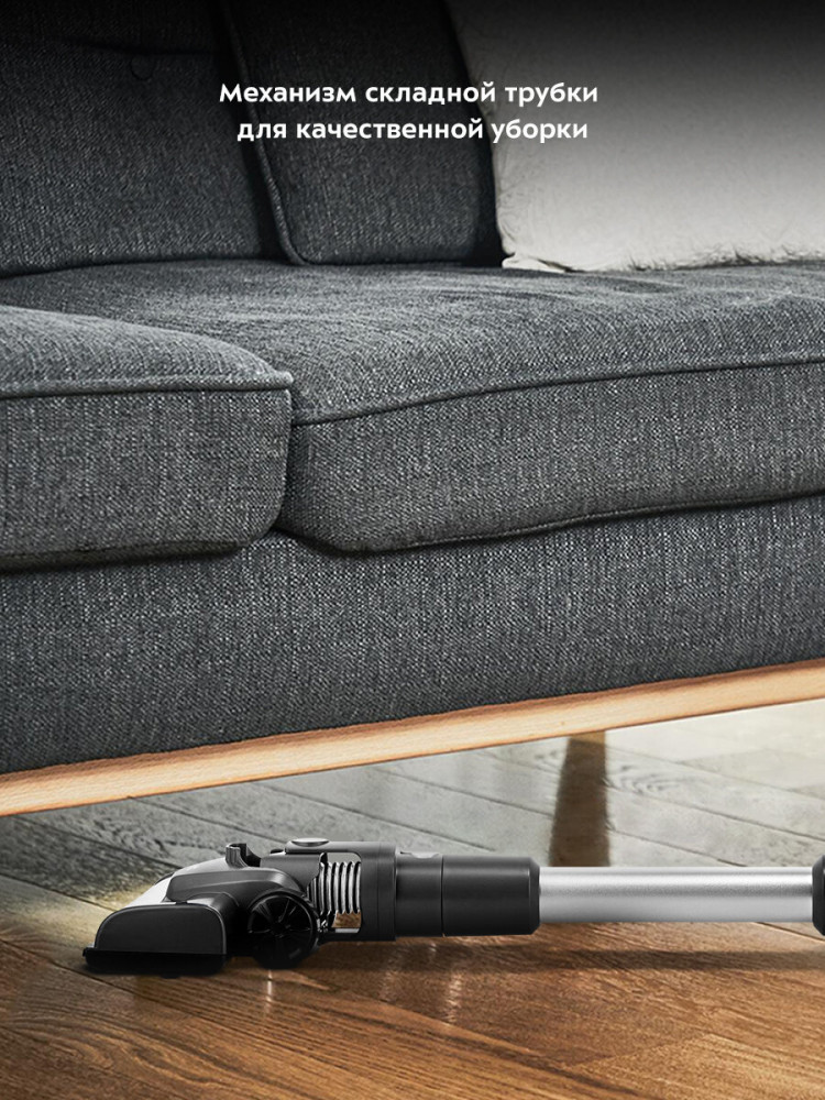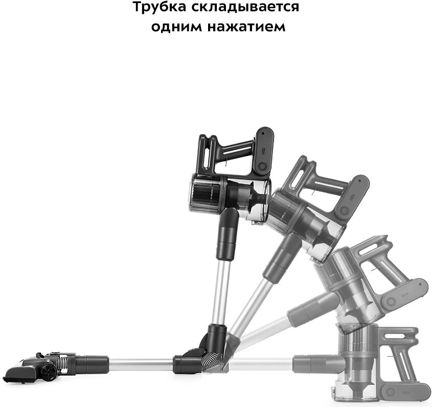 Для вашего удобства вы можете нажать на кнопку механизма складной трубки и вытащить шланг, тогда трубка станет гибкой. После нажатия вы сможете выбрать наиболее удобное положение для уборки.