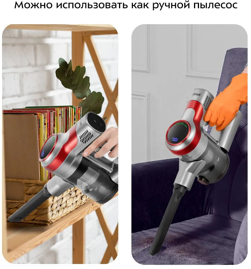 Конструкция «2 в 1» предусматривает использование ручного пылесоса. Им можно пропылесосить углы и плинтусы, обивку мебели, пыль со шкафов, шкафчики на кухне или в гостиной, книжные полки, коврики в автомобиле или багажник.