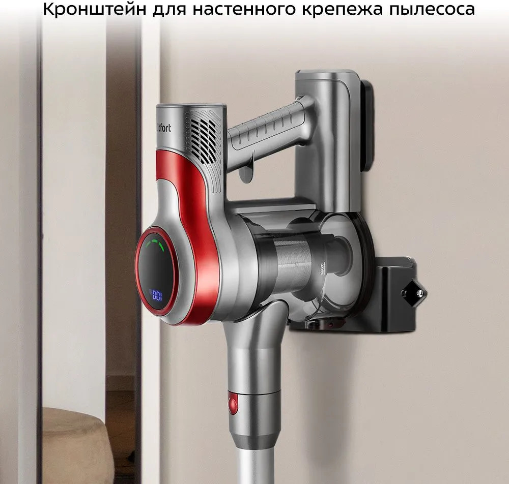 Зафиксируйте пылесос на кронштейне на стене. Так пылесос займёт меньше места при хранении и не упадёт, если вы случайно его заденете.