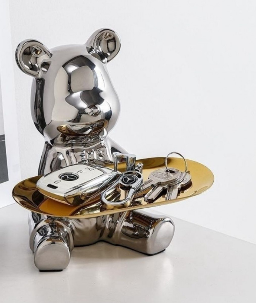 💳 Оплатить за товар можно при получении 🇰🇿 Есть бесплатная доставка по Казахстану от 1 дня 🎁 Копите бонусы с каждой покупки Декоративная подставка в виде медвежонка с подносом, высота 18 см. Элегантная подставка в форме медвежонка станет стильным акцентом в вашем интерьере и поможет хранить мелочи под рукой. Изделие выполнено в современном дизайне с зеркальным хромированным блеском и золотым подносом, что придаёт ему роскошный и современный вид. |