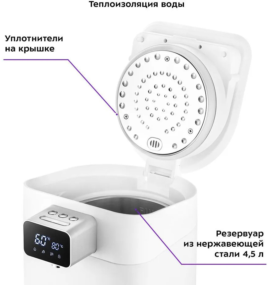 💳 Оплатить за товар можно при получении 🇰🇿 Есть бесплатная доставка по Казахстану от 1 дня 🎁 Копите бонусы с каждой покупки Термопот КТ-2515 служит для подачи воды заданной температуры и поддержания температуры воды с помощью периодического включения и отключения нагрева. Отличие термопота от обычного чайника в том, что термопот поддерживает заданную температуру воды, поэтому у вас всегда есть горячая вода. Также удобно наливать воду благодаря автоматической подаче воды. Термопот оснащен функцией выбора температуры и может не только вскипятить воду, но и нагреть ее до температуры 45, 55, 65, 85 и 95 °С, что очень удобно при заваривании различных сортов чая, приготовлении кофе и детского питания. |