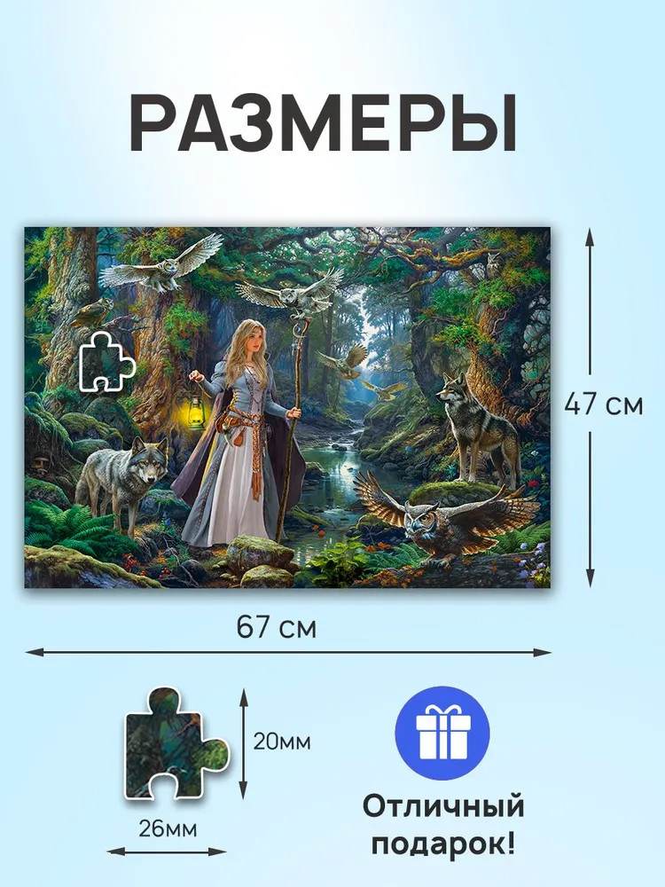 Рыжий кот Пазл «Девушка с волками и совами»+30