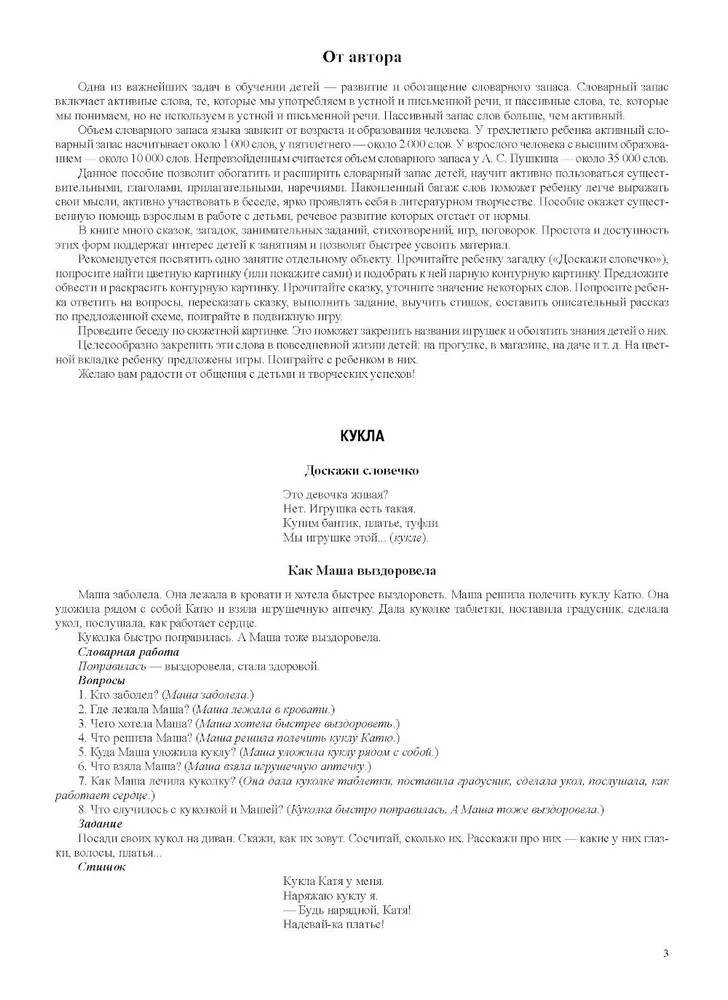 💳 Оплатить за товар можно при получении 🇰🇿 Есть бесплатная доставка по Казахстану от 1 дня 🎁 Копите бонусы с каждой покупки Материал, представленный в пособии, позволит обогатить и расширить словарный запас детей. Научит пользоваться существительными, прилагательными, глаголами, наречиями. В книге много авторских сказок, загадок, стихотворений, чистоговорок, занимательных заданий, потешек, игр по лексической теме «Игрушки». На вкладке даны цветные предметные картинки, картинки для раскрашивания (обводки, штриховки), сюжетная картинка и игры. Пособие окажет существенную помощь воспитателям и логопедам, а также может быть полезно гувернерам и родителям в домашних занятиях с детьми. |