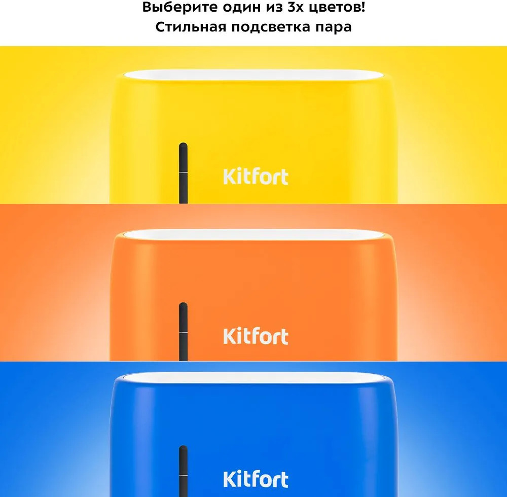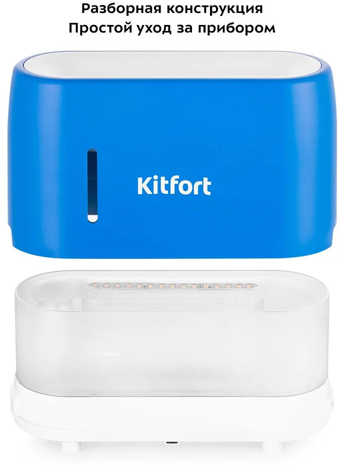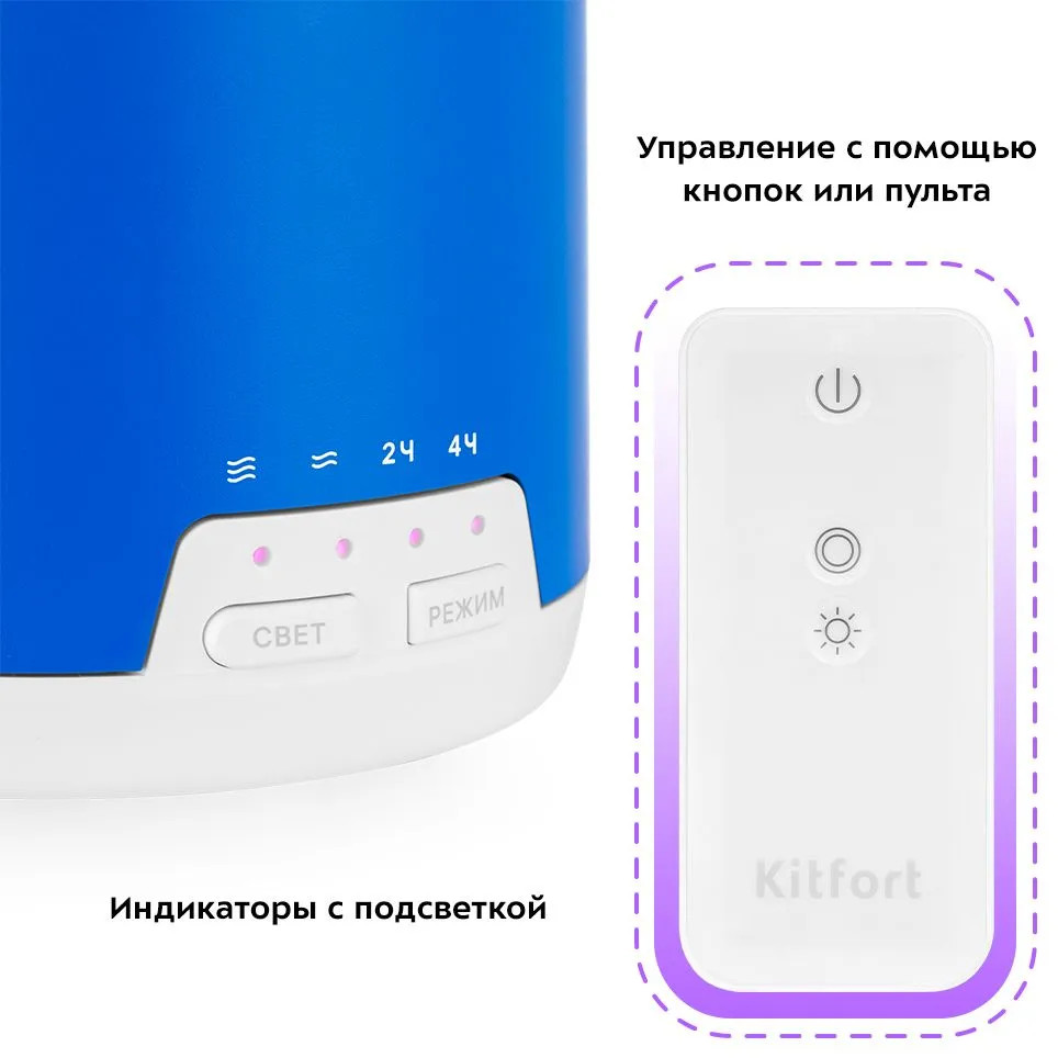 Увлажнитель-ароматизатор воздуха КТ-2887 — компактный портативный прибор, который будет увлажнять и ароматизировать воздух вокруг себя, поэтому можно комфортно находиться на рабочем месте, крепко спать или заниматься любыми делами, пока прибор работает. С помощью кнопок на панели управления или пульта дистанционного управления вы можете регулировать интенсивность увлажнения и яркость подсветки, а также включить таймер. Индикаторы с подсветкой сделают управление еще проще! Корпус увлажнителя КТ-2887 легко снимается, чтобы налить воду или очистить резервуар. Мойте крышку и резервуар теплой водой. Протирайте корпус влажной, а затем сухой мягкой тканью. Для удобного использования увлажнителя КТ-2887 в комплекте идёт мерный стаканчик, с помощью которого вы можете заливать воду в резервуар для воды. Для того, чтобы не перелить воду — на корпусе есть отметка «Макс». Увлажнитель КТ-2887 добавляет влаги в воздух, помогая улучшить качество сна. Модель проста в эксплуатации, отличается высокой надёжностью в работе. Создайте идеальный климат в помещении! Разукрасьте свою жизнь и добавьте туда ярких цветов с помощью стильных увлажнителей Kitfort КТ-2887! Компактный прибор не займёт много места и легко впишется в интерьер.