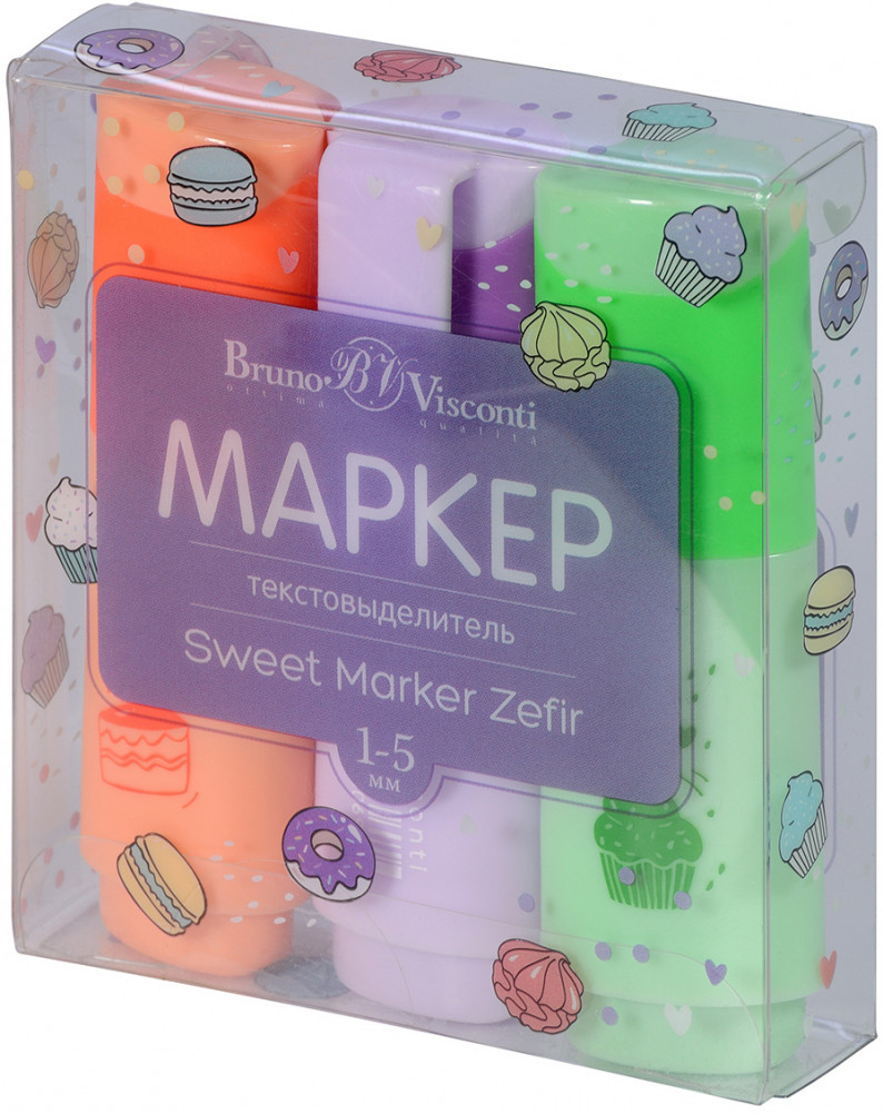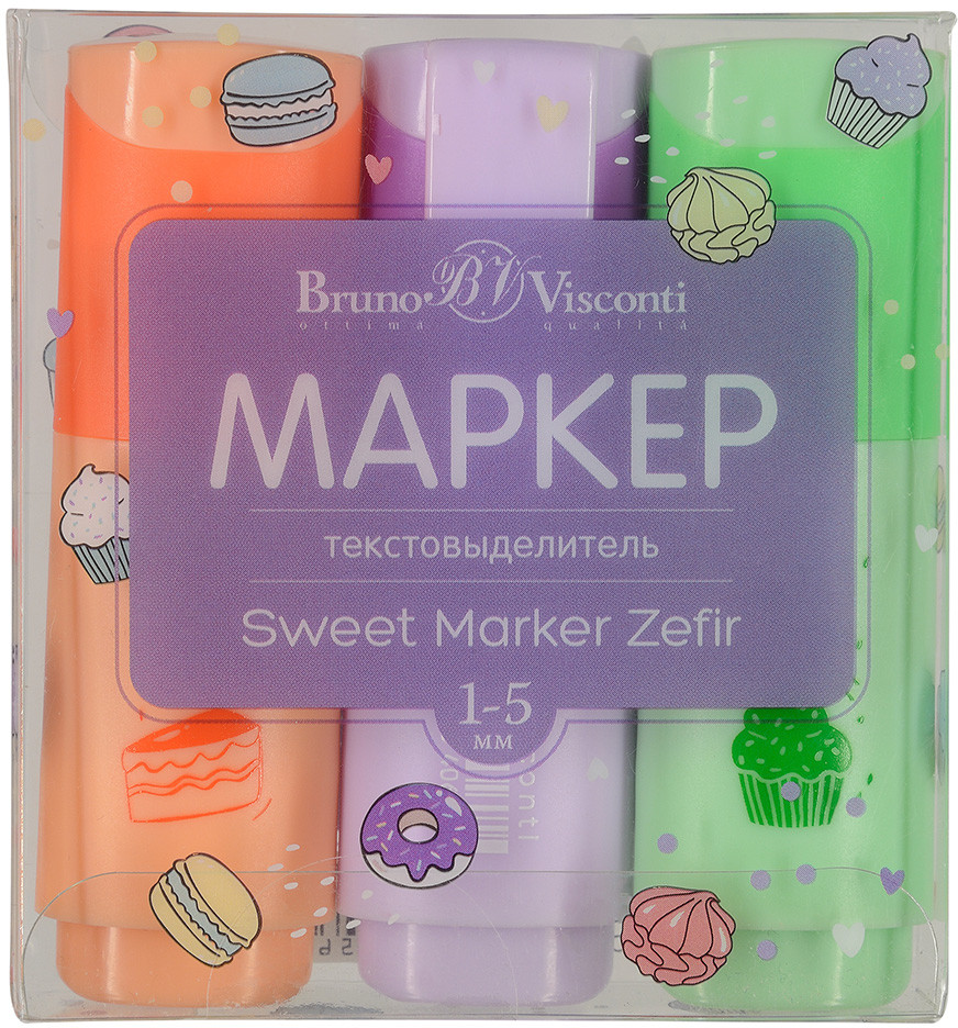 Bruno Visconti Набор текстовыделителей «Sweet marker Zefir»В данный момент этот товар отсутствует в продаже. Возможно, у нас найдется аналогичный или похожий товар здесь. Текстовыделители Bruno Visconti «Sweet marker Zefir» — отличный выбор для любителей нежных оттенков. Эти цвета не влияют негативно на зрение, не затемняют текст при его выделении. Чернила на водной основе не имеют запаха, мгновенно высыхают на бумаге любых сортов, не пропитывая ее, не смазывая текст. Текстовыделители до 24 часов сохраняют работоспособность без колпачка и при закрытом колпачке полностью восстанавливают свои свойства! Прочный пишущий узел не скрипит, мягко скользит по поверхности бумаги. Его скошенная форма позволяет проводить линии различной толщины: 1-5 мм. «Sweet marker Zefir» — это не просто набор текстовыделителей, это стильный аксессуар, который благодаря маленькому размеру, нежным оттенкам и оригинальному дизайну неизменно привлекает к себе внимание. Его легко разместить в дамской сумочке, пенале, а значит они всегда будут под рукой. |