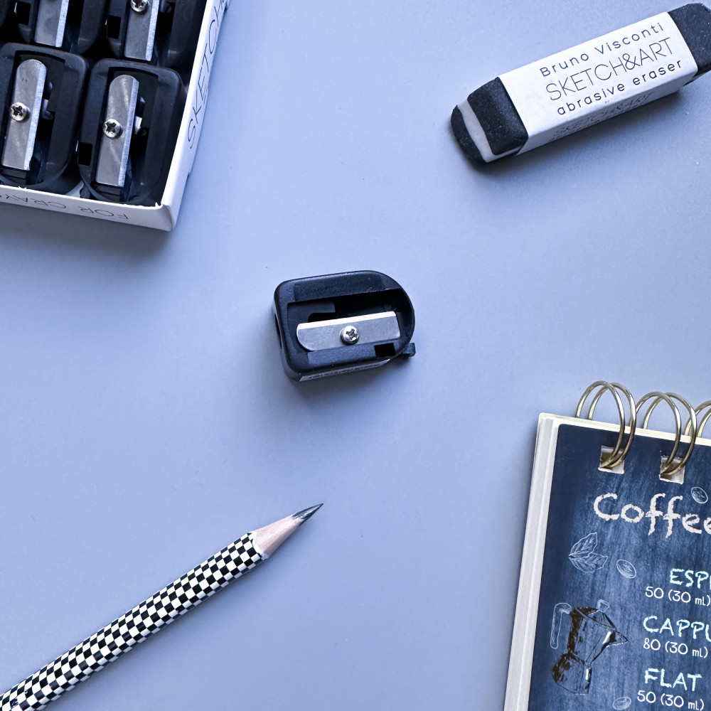 Bruno Visconti Точилка «SketchHandArt»В данный момент этот товар отсутствует в продаже. Возможно, у нас найдется аналогичный или похожий товар здесь. Точилка SketchHandArt универсальная с одним отверстием. В комплекте палочка для легкой очистки от стружки. Точилка идеальна для деликатной заточки чернографитовых, цветных, художественных и косметических карандашей. Высококачественное стальное лезвие. Изделие безопасно при использовании по назначению. |