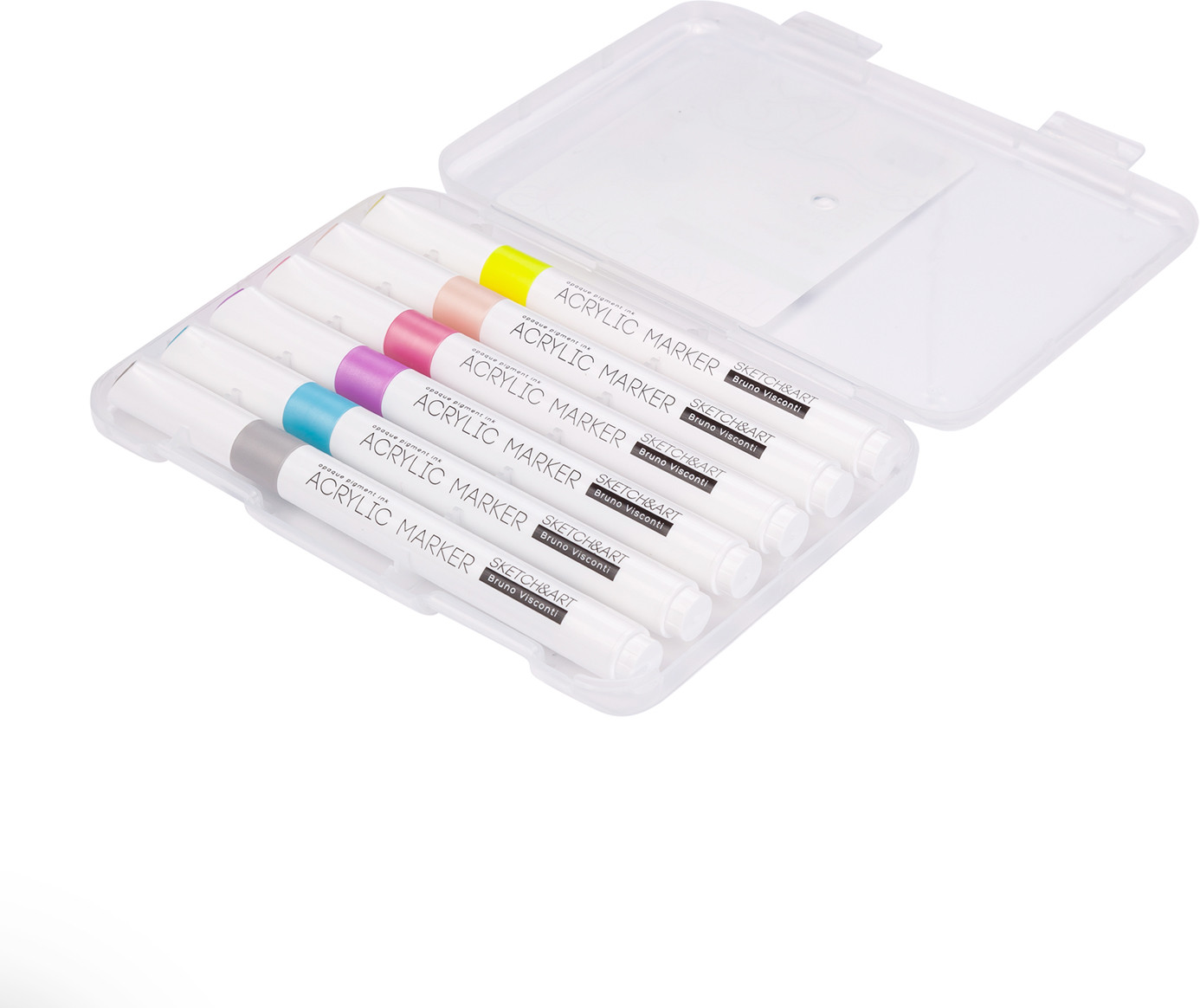 💳 Оплатить за товар можно при получении 🇰🇿 Есть бесплатная доставка по Казахстану 🎁 Копите бонусы с каждой покупки Набор из 6 акриловых маркеров «SketchHandArt» в пастельных цветах для рисования, декорирования, дизайнерских работ на любых поверхностях: холст, бумага, дерево, пластик, металл, камень, стекло, одежда, керамика. Корпус маркеров изготовлен из полипропилена — он легкий и ударопрочный. Плотно защелкивающийся колпачок обеспечивает долгую сохранность чернил от высыхания. Маркер имеет пулевидный наконечник из износостойкого волокна с шириной линии 1-3 мм. Нетоксичные пигментные чернила на водной основе с высокой степенью укрывистости быстро сохнут на поверхности, оставляя яркий след. Краски до высыхания можно смешать или растушевать кистью для достижения плавных переходов. Маркеры упакованы в пластиковый бокс — удобно хранить, транспортировать. |