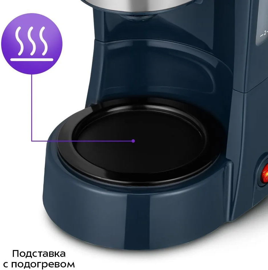 Капельная кофеварка КТ-7376 готовит ароматный чёрный кофе из молотого кофе. Она компактная и интуитивно понятная в использовании, что делает её универсальным помощником дома или например в офисе.