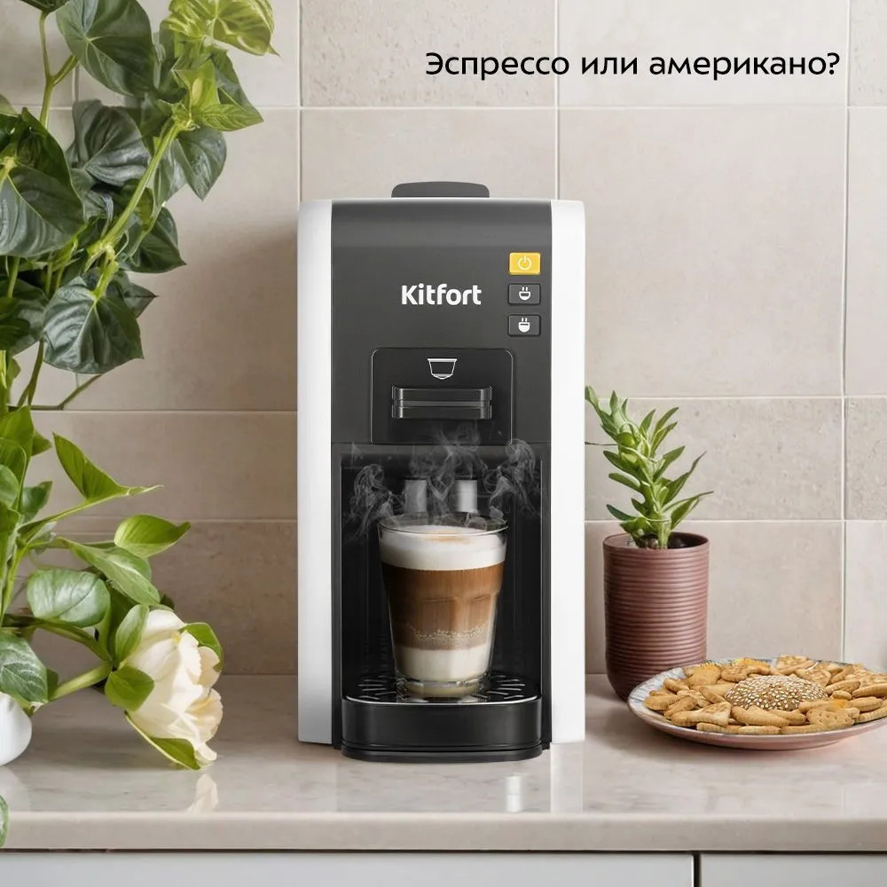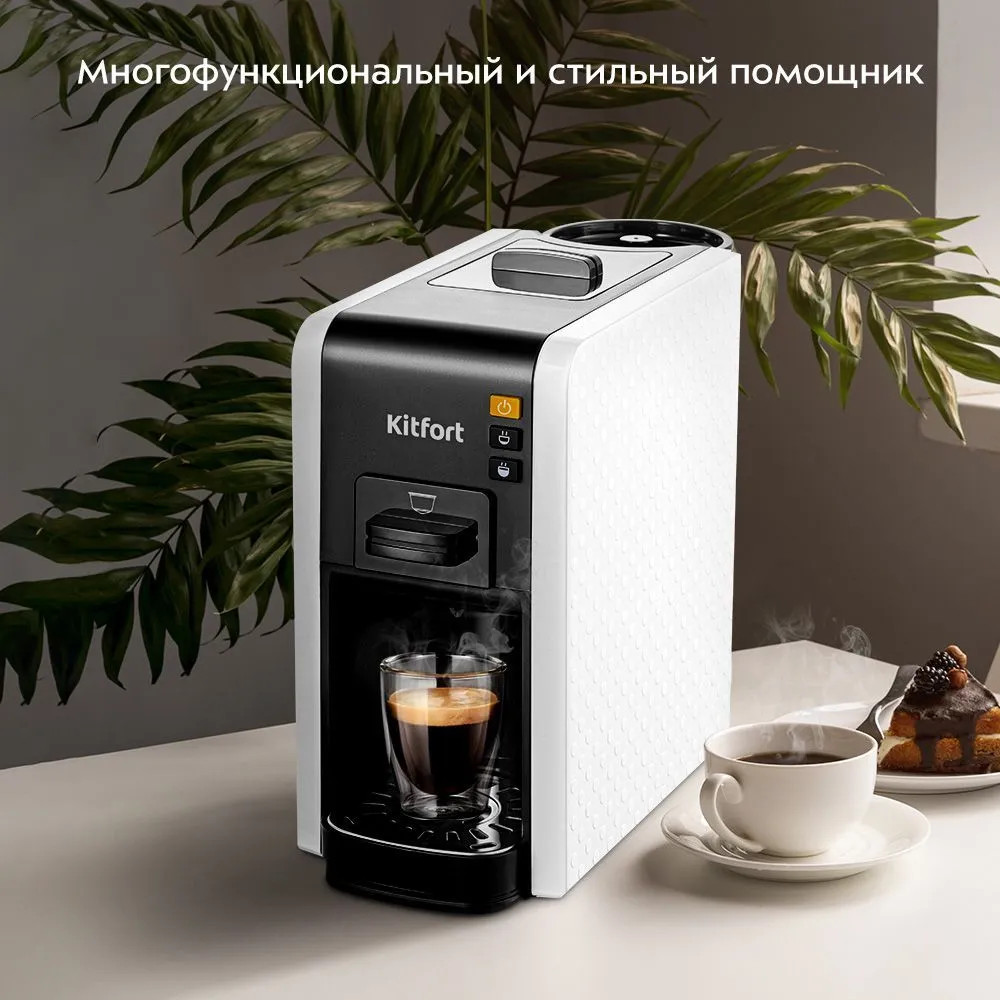 Кофеварка «3 в 1» КТ-7467 — многофункциональное устройство, сочетающее в себе функции капсульной и рожковой кофеварок. Она поможет приготовить кофе эспрессо, американо или лунго, а также множество других видов кофе на ваш вкус.