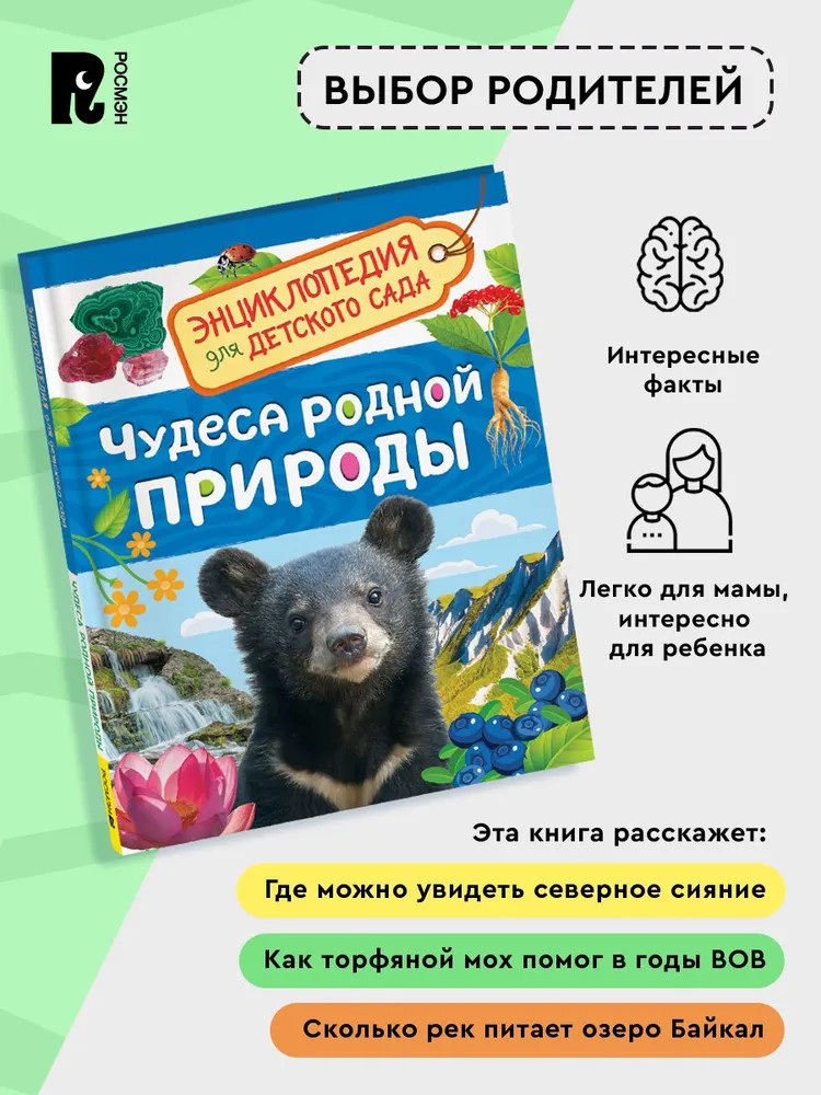 💳 Оплатить за товар можно при получении 🇰🇿 Есть бесплатная доставка по Казахстану от 1 дня 🎁 Копите бонусы с каждой покупки Серия: Энциклопедия для детского сада Эта увлекательная и легко написанная энциклопедия расскажет дошкольнику об уникальных растениях и животных, различных природных зонах, заповедниках и особо охраняемых природных территориях России. Книга поможет ребенку 4-6 лет развить кругозор и изучить окружающий мир. Интересные факты, наглядные красочные иллюстрации, краткие понятные тексты, увлекательные задания для проверки знаний и на развитие смекалки — всё, что нужно, чтобы привить ребенку любовь к научно-познавательной литературе и подготовить к обучению в школе. Познавательные факты о природе часто связаны с рассказами об истории и культуре России. Энциклопедия не только расширяет базовые знания ребенка по биологии и географии, но и способствует патриотическому воспитанию. |