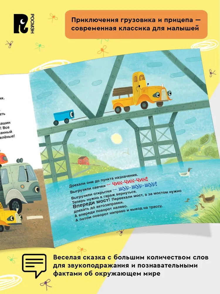 💳 Оплатить за товар можно при получении 🇰🇿 Есть бесплатная доставка по Казахстану от 1 дня 🎁 Копите бонусы с каждой покупки Серия: Полезные сказки Продолжение серии-бестселлера издательства «Росмэн» о приключениях грузовика и прицепа, ставших современной классикой для малышей! Герои отправляются на стройку, где их ждут новые знакомства, слова для звукоподражания, интересные факты об окружающем мире и строительство целого дома! В этот раз друзья отправляются на стройку, а там... Шум, гам, суета: бульдозер рычит, экскаватор грохочет, бетономешалка гудит — все строят дом! Вот только кирпичи куда-то пропали... А вот и дело для грузовика и прицепа — скорее на поиски! |