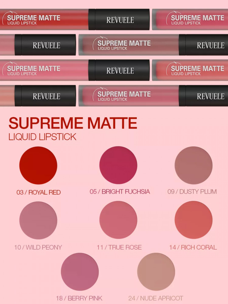 Revuele Помада для губ жидкая матовая «Supreme Matte Liquid Lipstick», тон 03 Royal Red