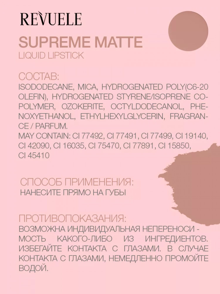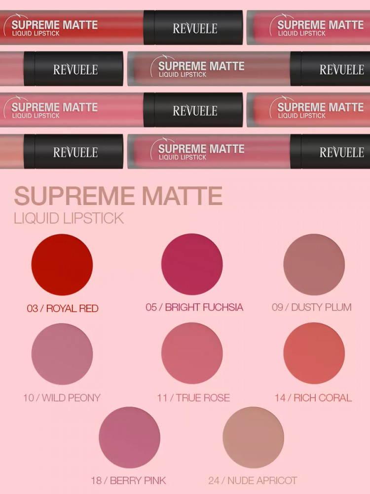 Revuele Помада для губ жидкая матовая «Supreme Matte Liquid Lipstick», тон 24 Nude Apricot