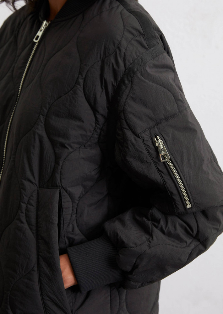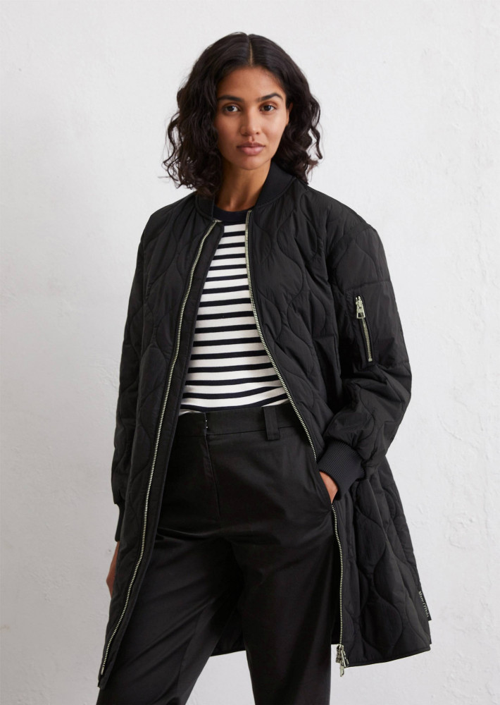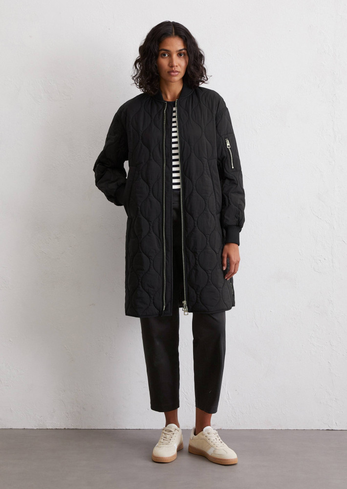 Когда летом становится прохладно, идет дождь или дует холодный ветер, но вы не хотите отказываться от непринужденного и стильного образа, выбирайте легкий стеганый плащ в стиле авиатора! Эта модель — не только самый модный тренд сезона, но и надежная защита от любой непогоды. Плащ выполнен в классическом крое regular fit с характерным трикотажным воротником-резинкой, спущенными плечами, длинными рукавами с ребристыми манжетами, большими прорезными карманами и прямым подолом. Яркие детали: контрастная окантовка из гросгрейна (в черном варианте — в тон плащу), прочная двусторонняя металлическая молния спереди и волнистая стежка, привлекающая внимание. Легкая подкладка обеспечивает комфорт, а универсальность модели позволяет носить этот плащ вплоть до осени и даже зимы. Стиль, защита и практичность в одном!
