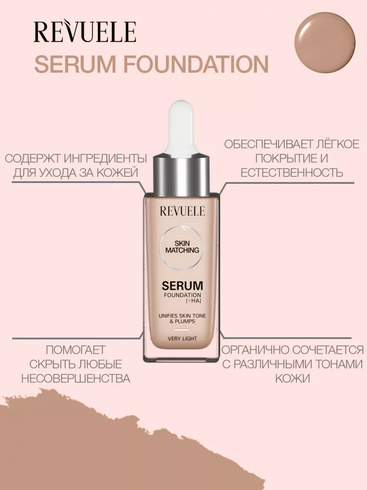 Revuele Тональный гиалуроновый крем с дроппером « Serum Foundation + HA», оттенок Very Light