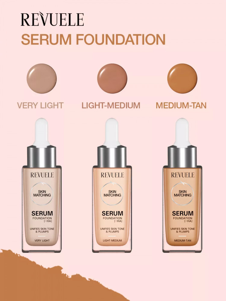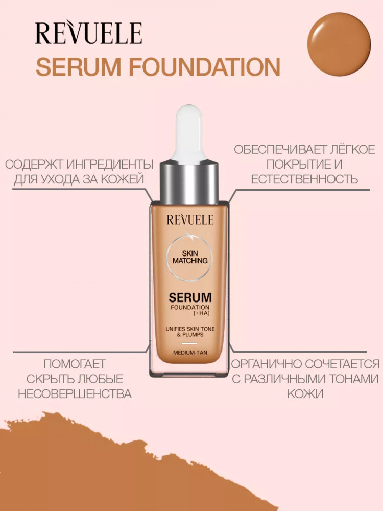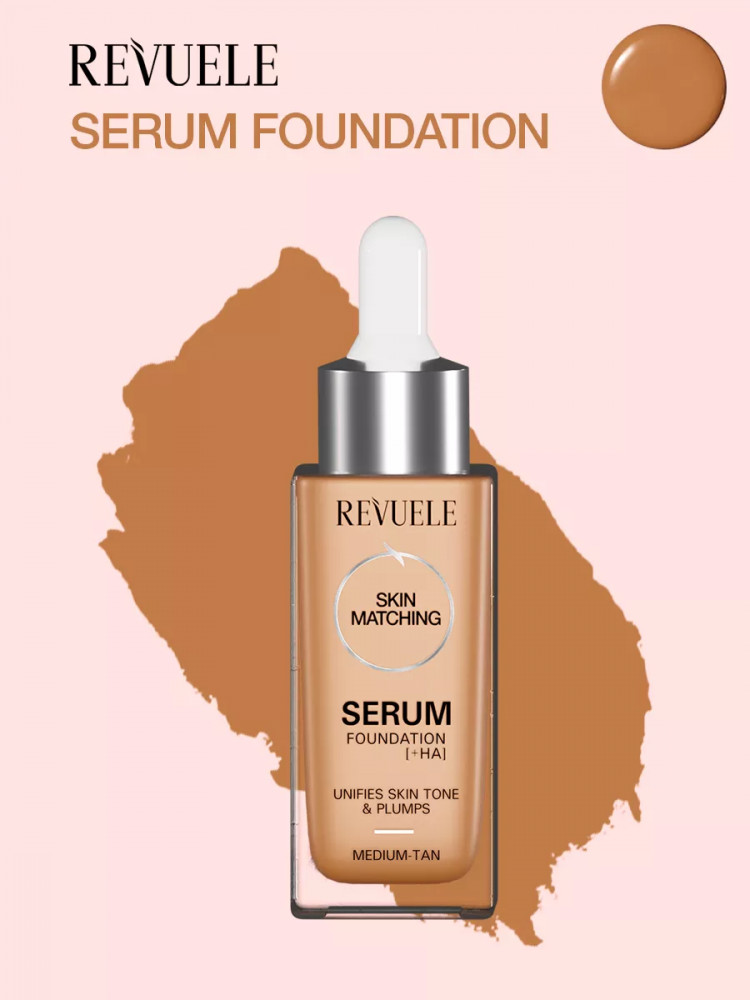 Revuele Тональный гиалуроновый крем с дроппером « Serum Foundation + HA», оттенок Medium-Tan