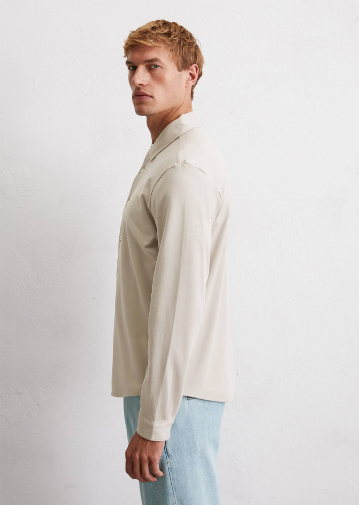 Трикотажная рубашка впечатляет классическим кроем regular fit и первоклассным качеством изготовления из 100% органического хлопка. Трикотаж средней плотности с эффектом "жидкого касания" придает рубашке исключительно мягкую и гладкую текстуру, обеспечивая непревзойденный комфорт при носке. Элегантный воротник-кент и длинные рукава с манжетами придают рубашке классический вид. Сдержанная силиконовая нашивка с логотипом над подолом завершает современный дизайн, делая эту рубашку идеальным спутником для непринужденных и стильных casual-образов. Создано для цикличности: рубашка разработана в соответствии с критериями циклического дизайна, что облегчает ее последующую переработку.