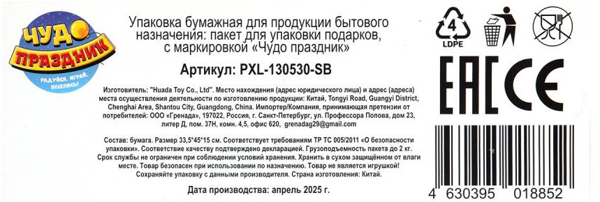 Чудо праздник Пакет подарочный «С Днём рождения»
