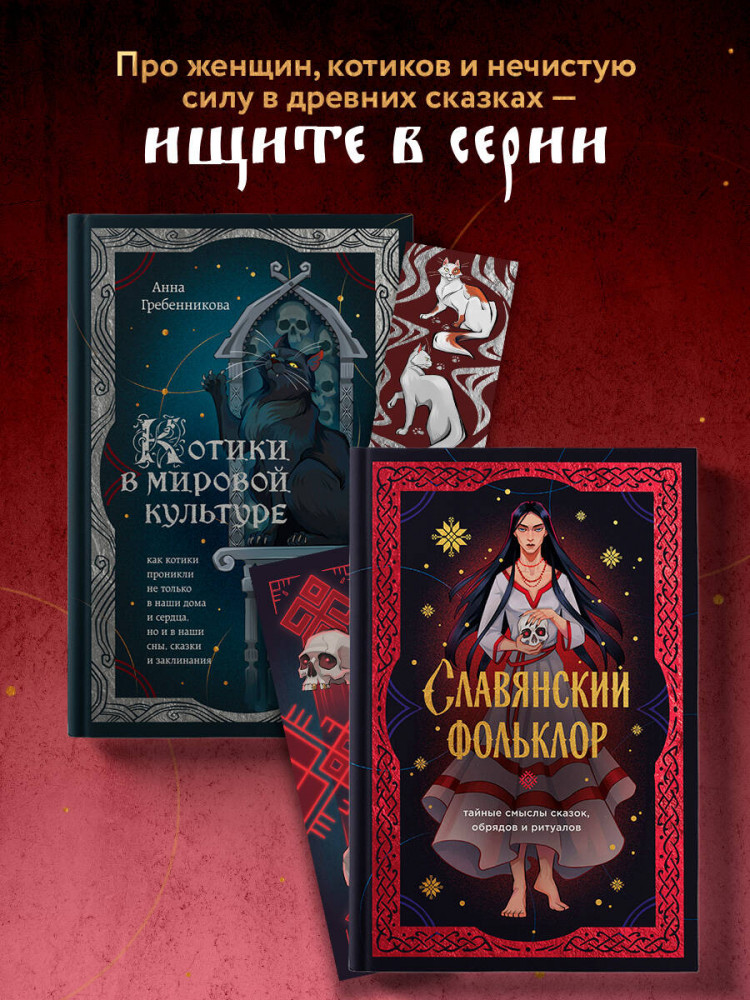 Славянский фольклор. Тайные смыслы сказок, обрядов и ритуалов. Комплект из книги и закладкиВ данный момент этот товар отсутствует в продаже. Возможно, у нас найдется аналогичный или похожий товар здесь. Серия: Нескучный фольклор. Мифы, сказки, легенды Вторая книга после бестселлера «Котики в мировой культуре» в серии «Нескучный фольклор»! В этот раз откройте тайны славянского фольклора — мира, где живут боги и духи, в сказках спрятаны ключи к реальности, а в обрядах — память предков. Эта книга расскажет о Маре, Перуне, домовом и лешем, о богатырях и ведьмах, обрядах и символах, которые окружали наших предков в быту — от вышитых рушников до заговоров на любовь. |